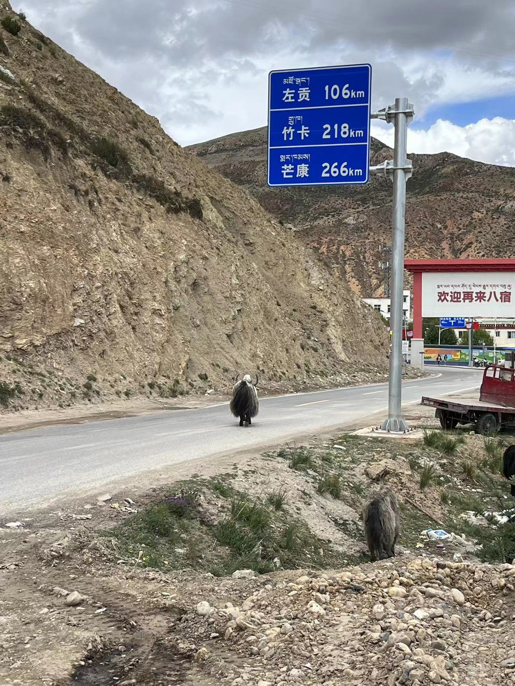 我们运气不错,没有遇到封路,全程在村庄边堵了大约半个小时,因为遇到牛哥吃草。