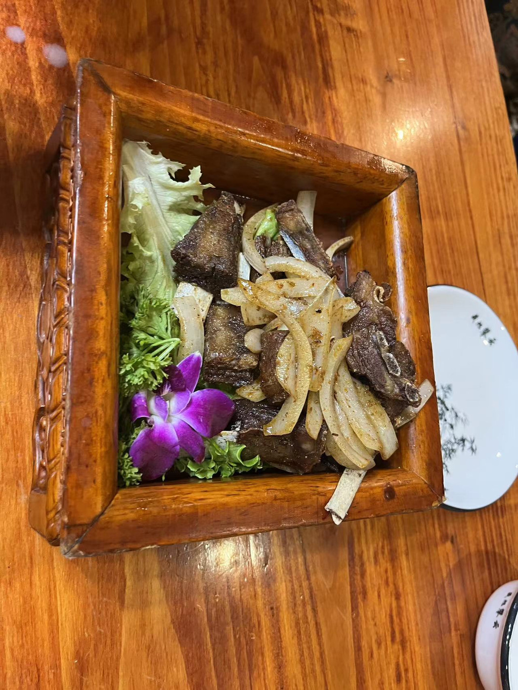 找了个饭店吃晚饭,烤羊排,不错