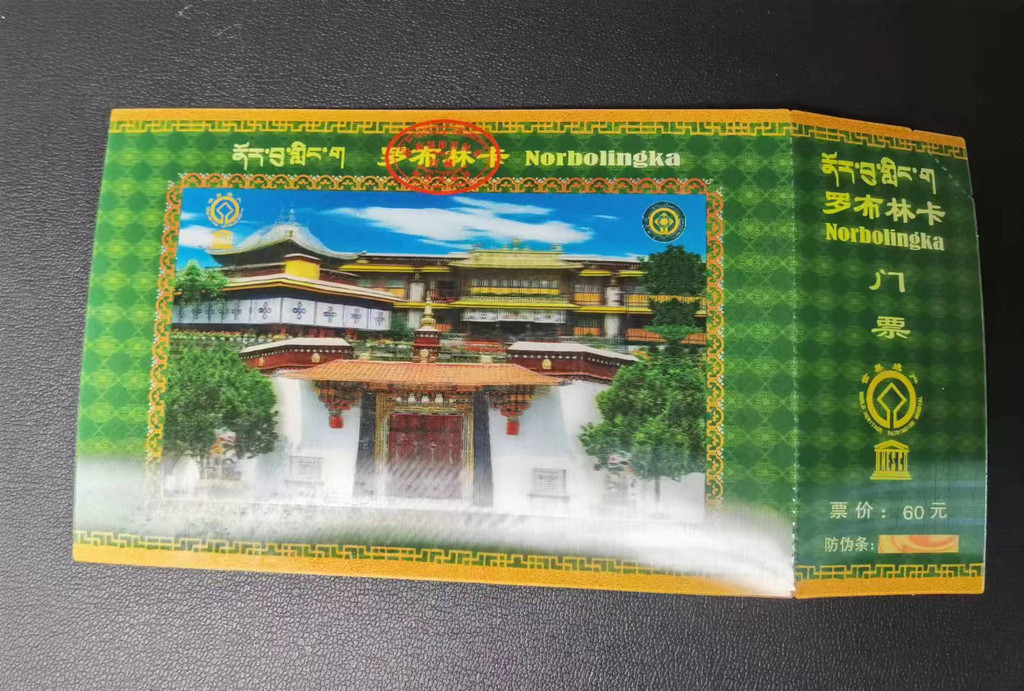 门票60,60岁以上老年人半价。顺便说一句,罗布林卡的门票非常精美,具有裸眼3D效果,是我到过的所有景区中见过最精美的门票。