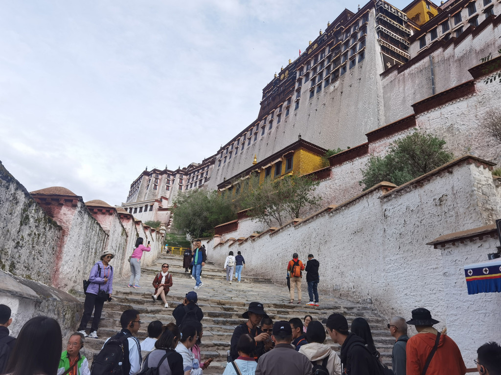 无论在拉萨或者说在西藏逛多少景点,布达拉宫都是必到的,而且一定要安排在离开拉萨的前一天。实在是太难爬了,十几层楼高度,没有电梯,只能靠爬上爬下。有些地方的楼梯坡度差不多接近80度,有时候每级台阶和楼梯还很高,需要手脚并用,老年人会比较吃力。夏天参观布达拉宫有两条线,一号线看的地方多,门票200,老年人100,;二号线参观一些精华场所,门票100,老年人50,但都需要提前十天在小程序上抢票,现场买票基本不太可能。布宫的售票和检票处都在半山腰,得先爬上来才检票。如果爬了半天却没有票,那酸爽的感觉,简直难以想象。