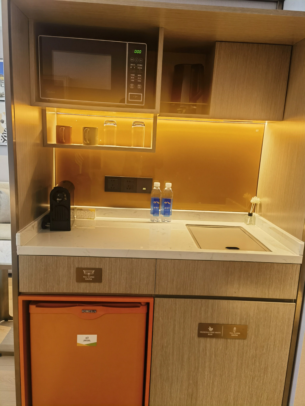 (空调+地暖++加湿器)三buff:拉萨干到裂开?不存在的!晚上穿着短袖吃西瓜(房间有迷你小冰箱),魔幻体验,还有可爱的机器人送外卖!客房全落地窗大玻璃,采光足、视野好,远眺布达拉宫夜景,别有一番风味......