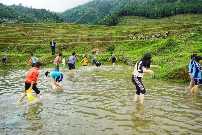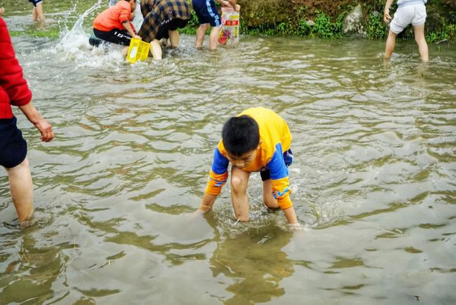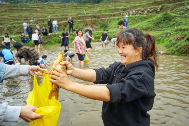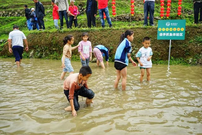这次的春耕节还设立徒手抓鱼体验区。男女老少都纷纷进入水塘中,尝试了一次抓鱼的乐趣。花花觉得,能不能抓到鱼已经是其次了,现在又有多少城市里的人能感受到田间戏水的快乐呢。