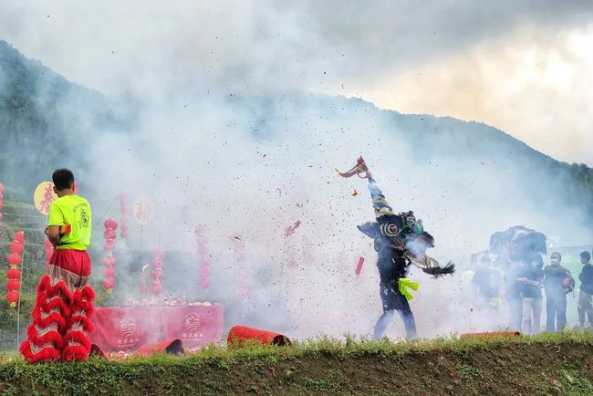 “炸火狮”是连州特色的民俗活动,是为了驱赶危害人类的年兽而流传的壮家传统表演。