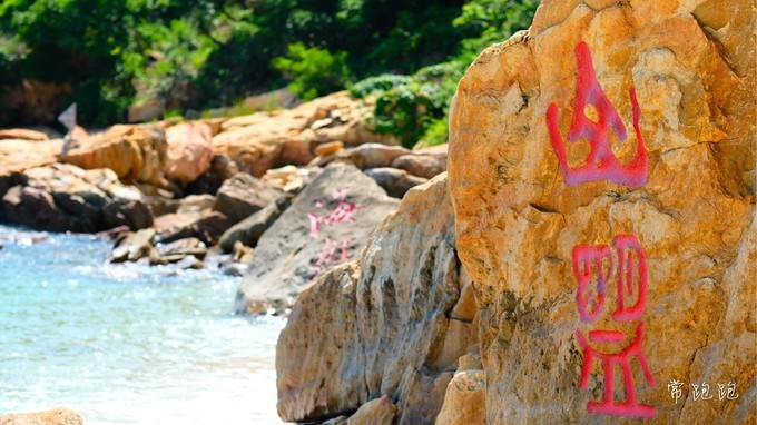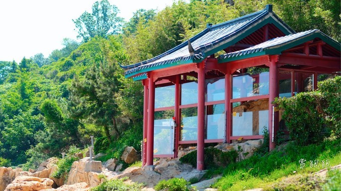这处低调又浪漫的海湾边还藏着一块界域刻石。在苏马湾海湾东南隅山脚下的半边亭内,有一长6米,高1.5米的巨石,石上刻有碑文,为“东连岛 东海 琅琊郡界域刻石”。