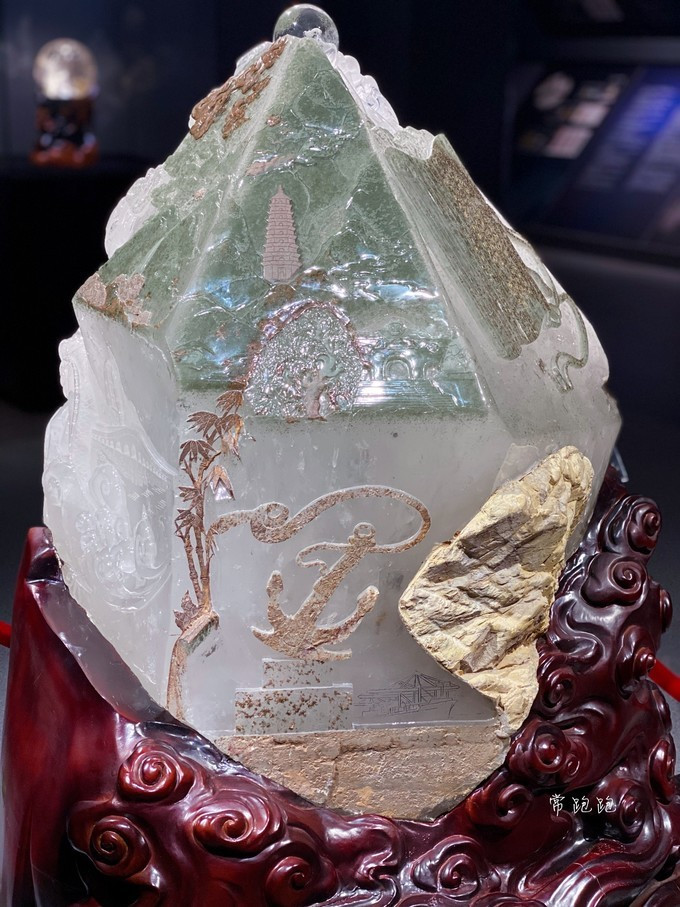 在博物馆8个展厅里,收藏着2000余件世界各类水晶。博物馆入口处矗立的晶王,其品质与透明度堪称水晶之最,是罕见的稀世珍宝,更是博物馆的镇馆之宝,下图就是晶王本晶了。