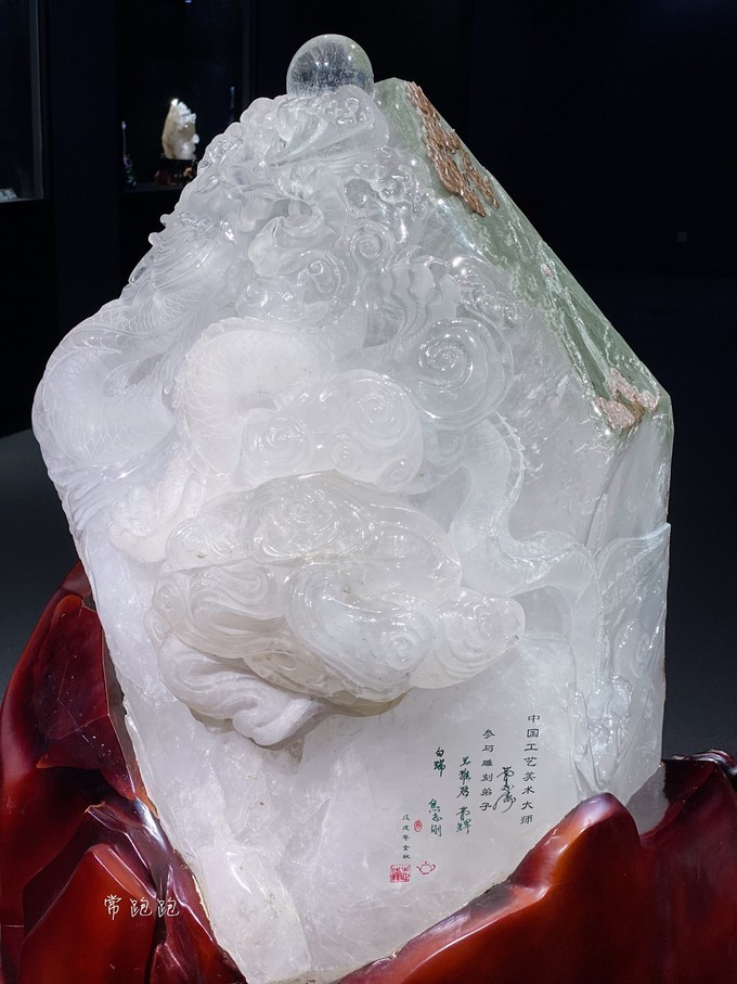 精品厅算是水晶博物馆的精华展厅,经过人工雕琢的水晶大放异彩:端庄 平和 的地藏王 菩萨 、绿幽灵雕刻的独占鳌头、 白水 晶雕刻的佛首、 白水 晶雕刻的平安观音、茶晶雕刻的财神……如果看的心痒痒,想带回去几件饰品或摆件,就去不远处的 东海 水晶城逛逛。