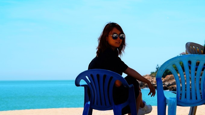 傍晚的苏马湾是紫色的,而日出之后,苏马湾的色调便成为了大海、草木、山石、沙滩的混合色。