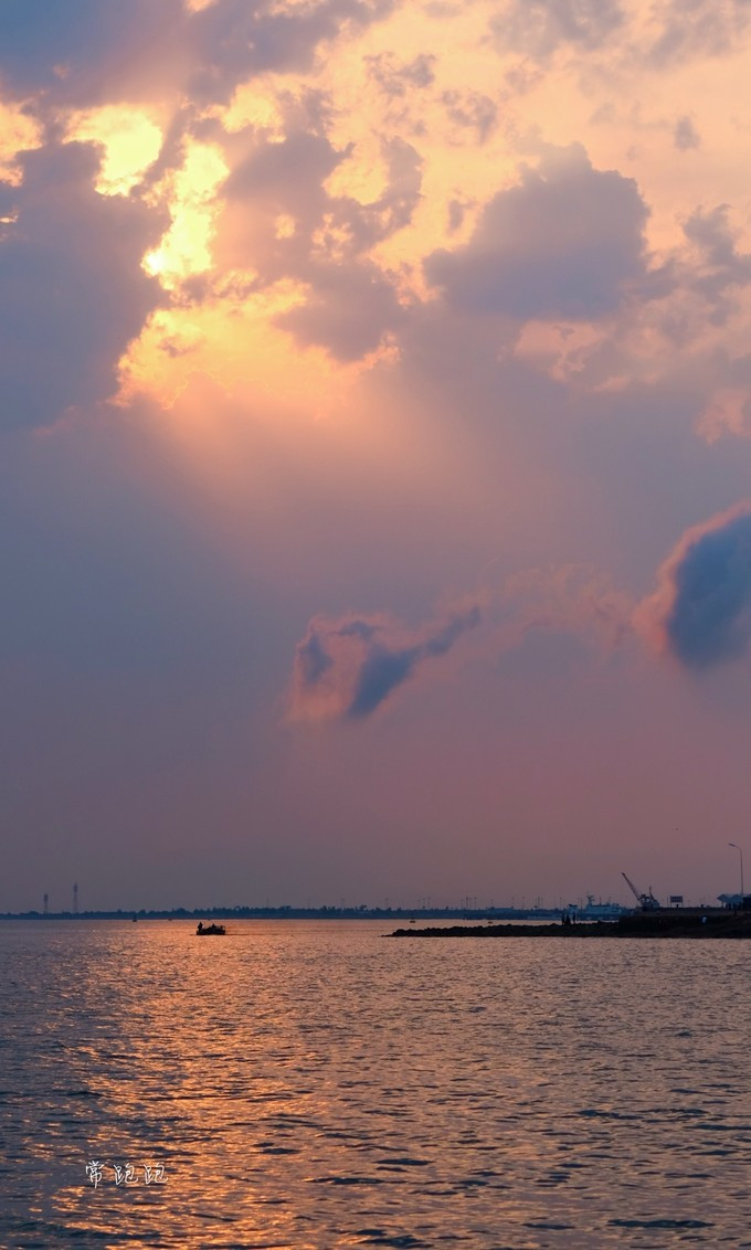 如果遇见夕阳,在海上等候落日没入海平面,你会觉得金色且风平浪静的大海,会给人一股强大的力量。