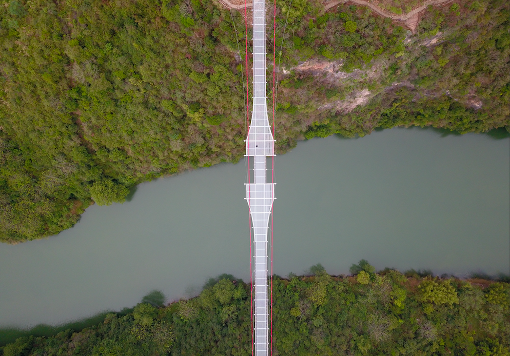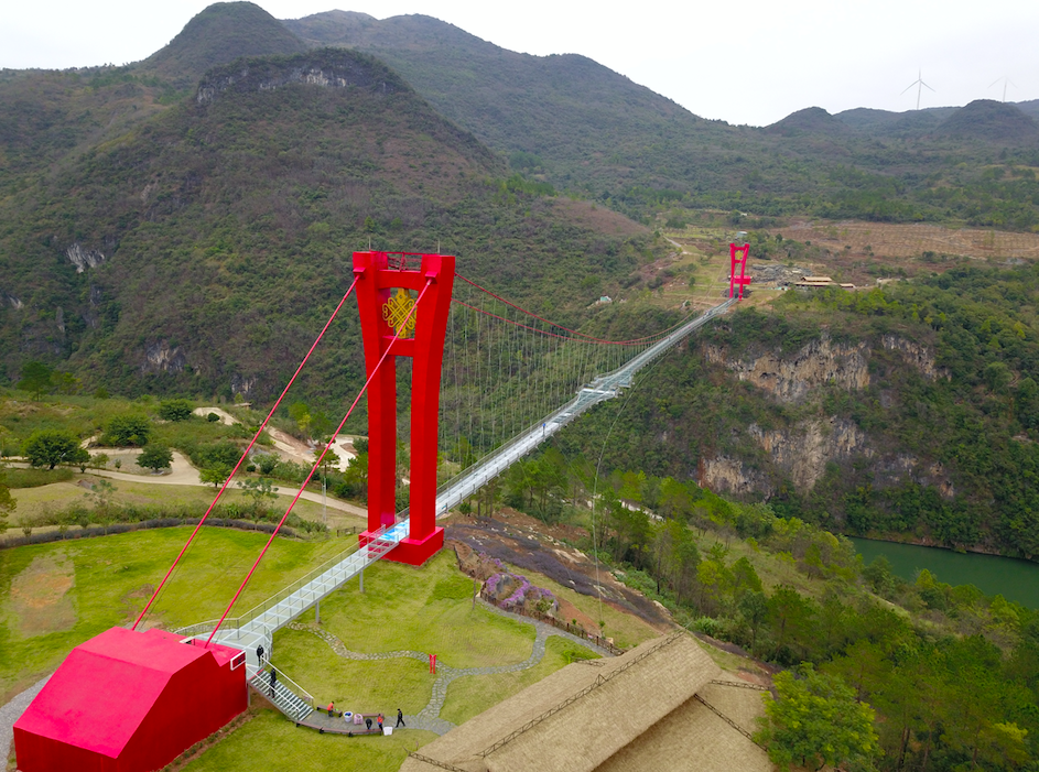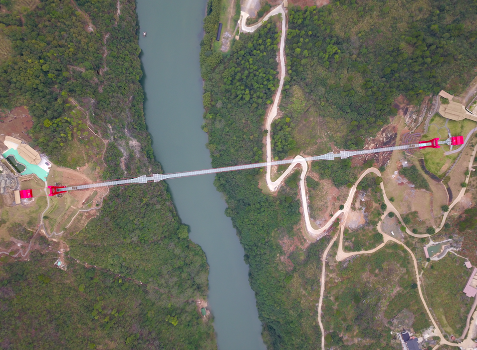 连州湟川三峡擎天玻璃桥横跨悠长秀丽的湟川三峡,在万丈悬崖与流泉飞瀑间凌空飞起,长度达526.14米,耗资超3亿元,创下了吉尼斯世界纪录,光是远远望去就让人小心脏砰砰跳!