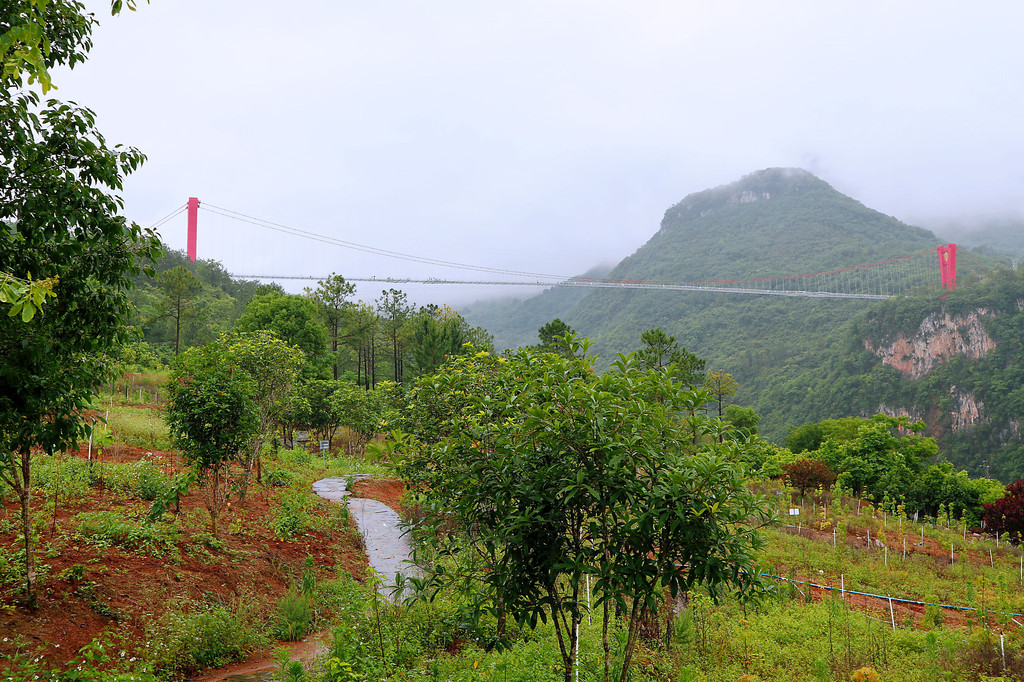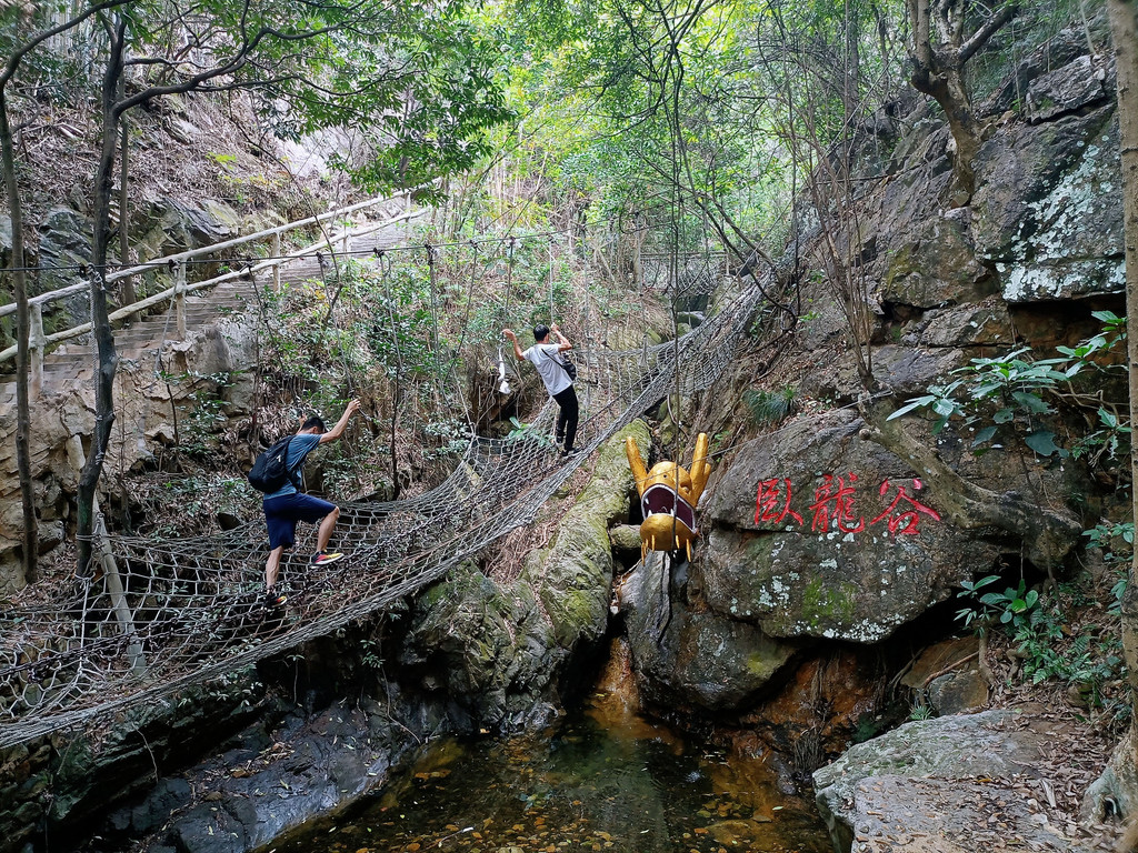牛鱼嘴风景区,说是风景区,其实更像是一个游乐场,一个充满拓展类设施的游乐场。就连登山的路上,也会设置一些绳网、铁索、铁链等设施。