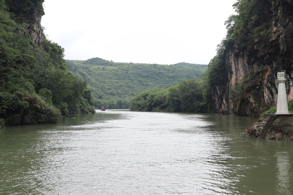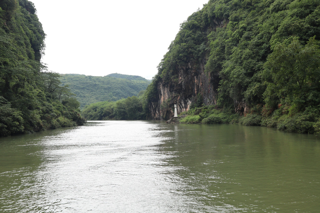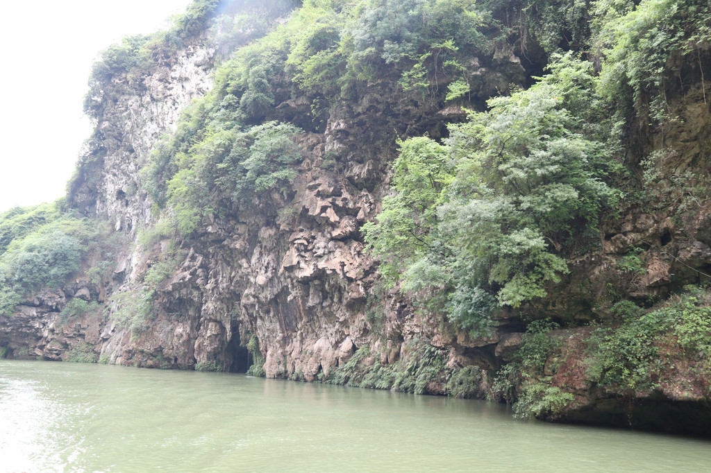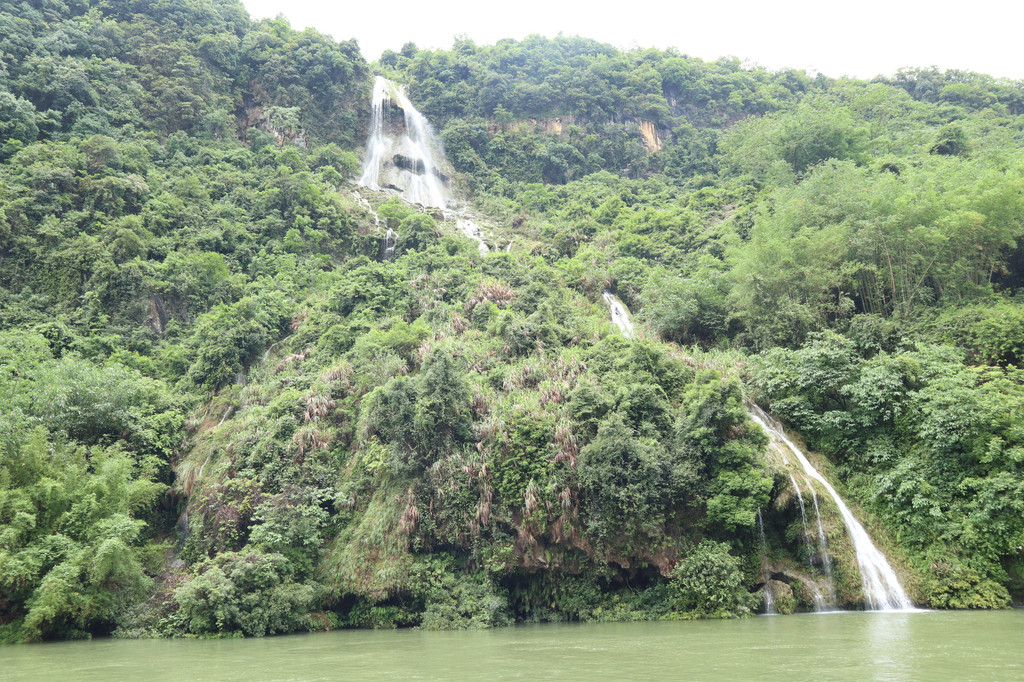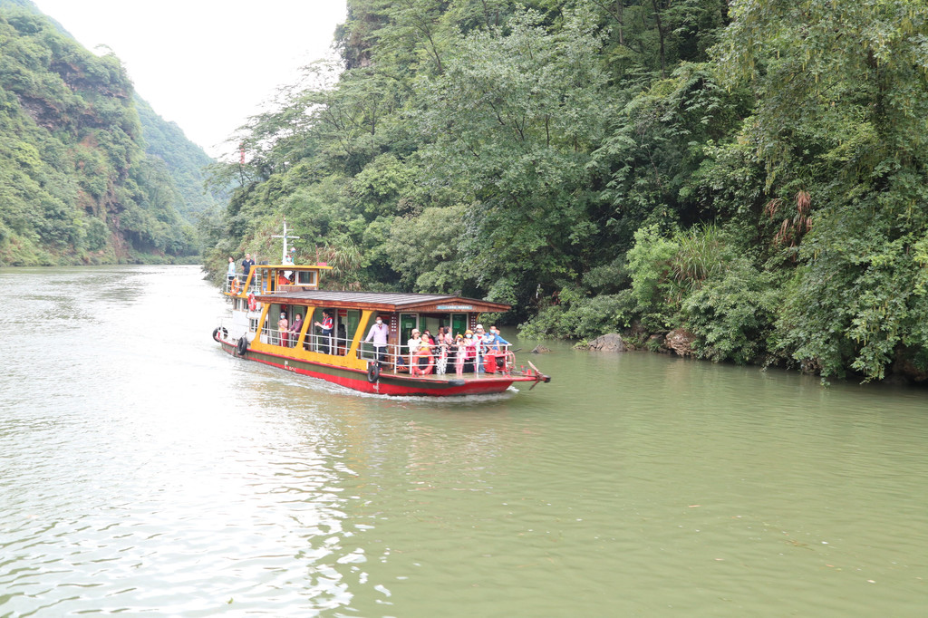 趁着雨停了,我们就先去坐船游三峡。游船是有几种类型的,有一种是可以上二楼甲板的,建议选坐这类游船,二层的甲板空间够大,可以随意拍照,不用担心人多。湟川三峡是指羊跳峡、楞枷峡和仙女峡。峡谷周遭群峰连绵,满目苍翠,悬崖峭壁大开大合,不时有瀑布飞泻而下,可谓美不胜收。由于导游是在一层船舱讲解,我在二层甲板拍照,所以也没听讲解 ,也没分清三峡的位置在哪里,只是一路随意地吹着风,拍着照。游船的时间不是很长,20分钟左右就到达终点了,然后就掉头往回走了,回程的速度更快点,全程30分钟左右就完了,感觉有点意犹未尽。
