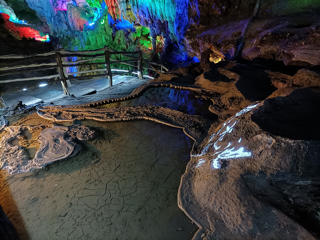 我们跟着导游小姐姐走了差不多一个小时,来到了游船码头,因为游船停开,没有人排队,我们有点叹息不能游览地下河。导游小姐姐安慰我们说,这种情况一年只有几天,我们是运气好碰上了,昨天虽然也下雨,但不影响游艇,只是游客太多,排队都要等两三个小时。听了导游的安慰,其他游客不知道会不会心情好点,我是只好无奈地跟着导游原来返回了,每次旅游总会有点遗憾的。又走了40分钟,终于走出了溶洞。