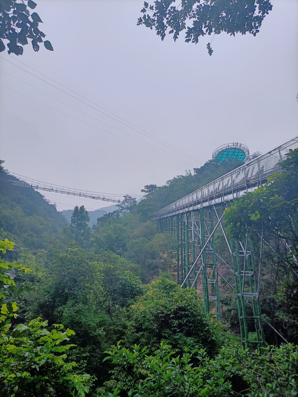 从山脚走到玻璃桥也只需要十五分钟左右,因为儿子愄高,我们就没去了。只是走到半山就往回走了,因为山上施工封路了。山上还有一条滑道,可以直接滑下山,如果累了不想走,可以花点钱滑下去,省时省力。在景区待了一个半小时左右,我们就走了。