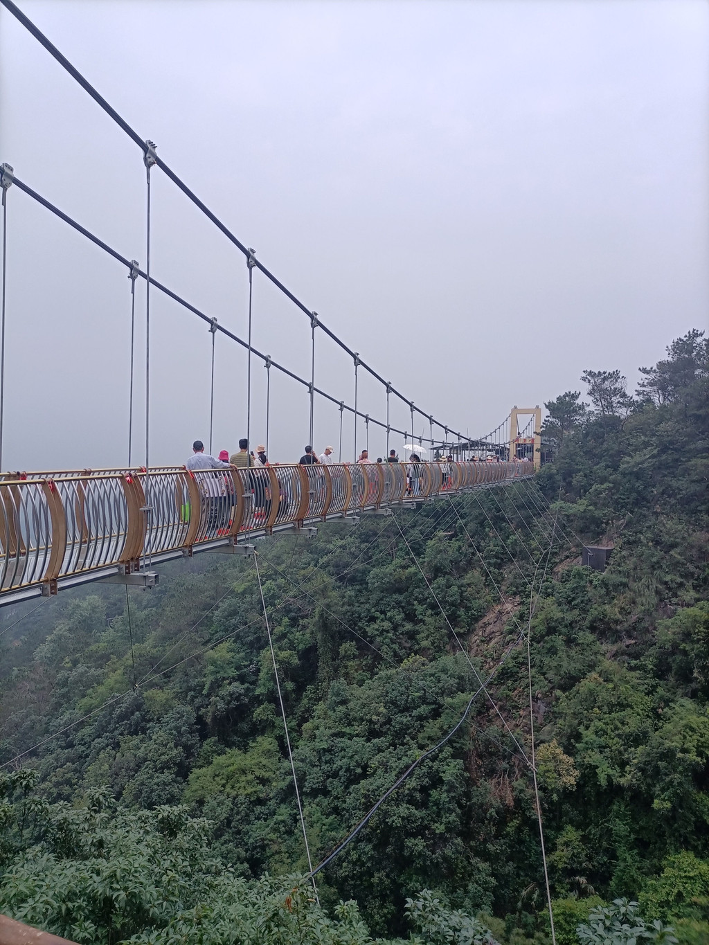 在山上,也建设了一条玻璃桥,另收门票80元。另外还建一条所谓的“魔毯”直达玻璃桥,省了爬山之累,费用是20元钱,其实就是一条类似扶手电梯的传送带。