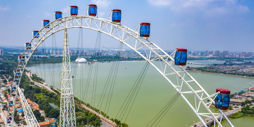 摩天轮以蓝色为主调,呼应了水城之眼的名字,乘坐它登到150米高空,北望东昌湖,南望凤凰湖,水城之美,一览无余。日新月异的聊城,这只是一个开始,更加多彩的新玩法,请您继续往下看。