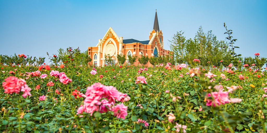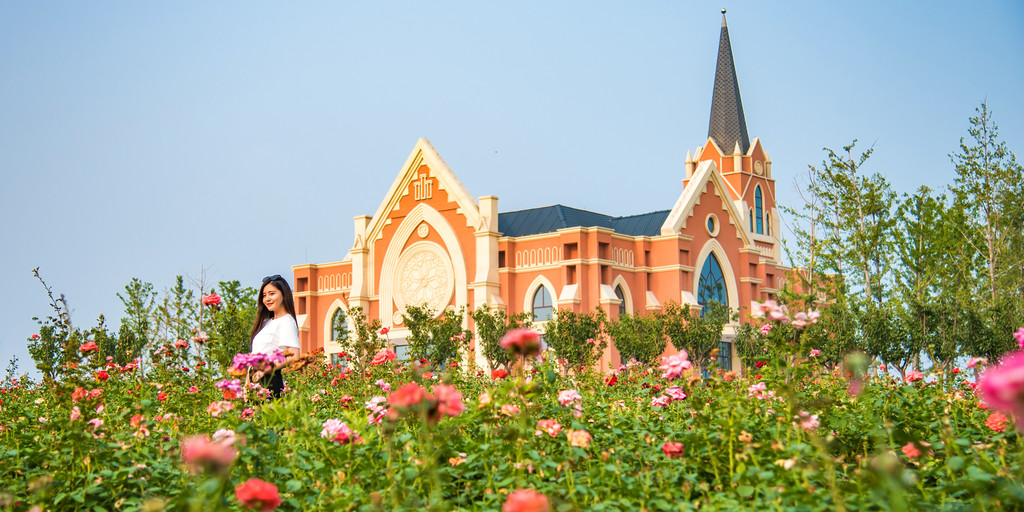 因为月季花期时间长,而且花色多种多样,无论什么时候都是拍照打卡的好去处。一望无际的月季花海,搭配梦幻的城堡建筑,随手一拍瞬间变身小公主了!