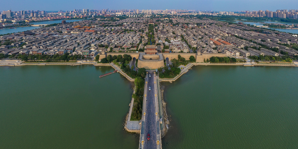 聊城,就是因运河而兴的一座城市。在明清时期被誉为“漕挽之咽喉,天都之肘腋”,日复一日、年复一年地缓缓流淌着的大运河,见证着这座城市的历史沧桑。水,是聊城的灵魂,在不到40平方公里的城区里,水域面积竟达13平方公里,占三分之一还多。而著名的东昌古城就坐落在东昌湖中央,形成了“城中有湖,湖中有城,城湖一体”的独特古城格局和风貌。