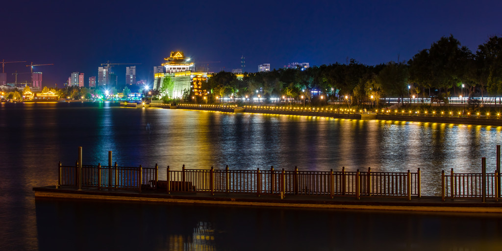 褪去喧嚣,让我们再回到东昌湖上,此刻的聊城,夜已经是深深的静了。大剧院在水面投射出绚烂的色彩,湖边上古城墙勾勒的灯火依旧在闪烁不停。