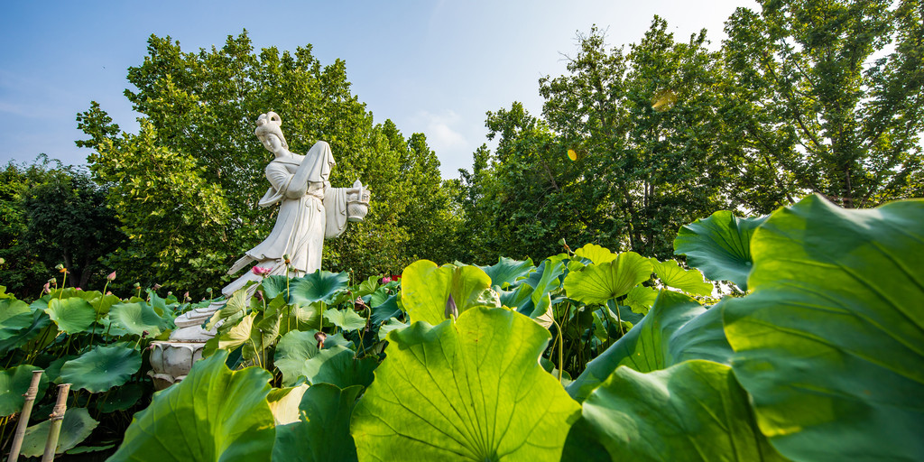 满池的荷花在八月热烈的绽放着,树上风铃摇曳,白天里的南湖湿地公园到处是自然的清新可爱。
