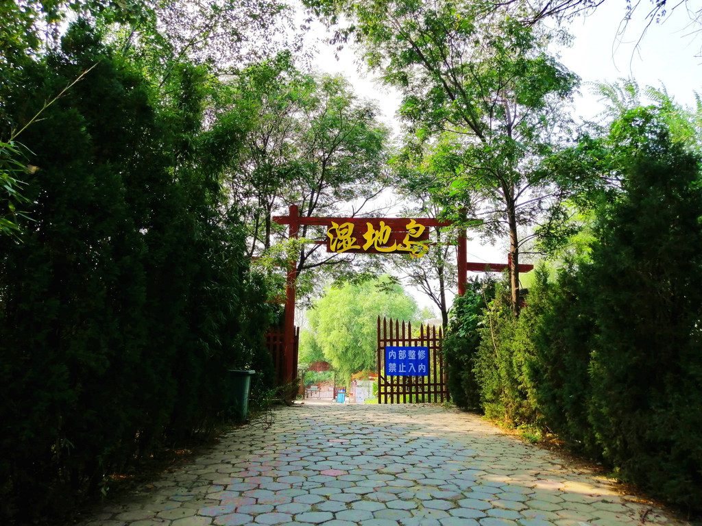 湿地岛大门口的地上竖着聊城作家创作基地等几块牌子,假如不是太热爱原生风景的,不建议去这个岛,太费腿了。