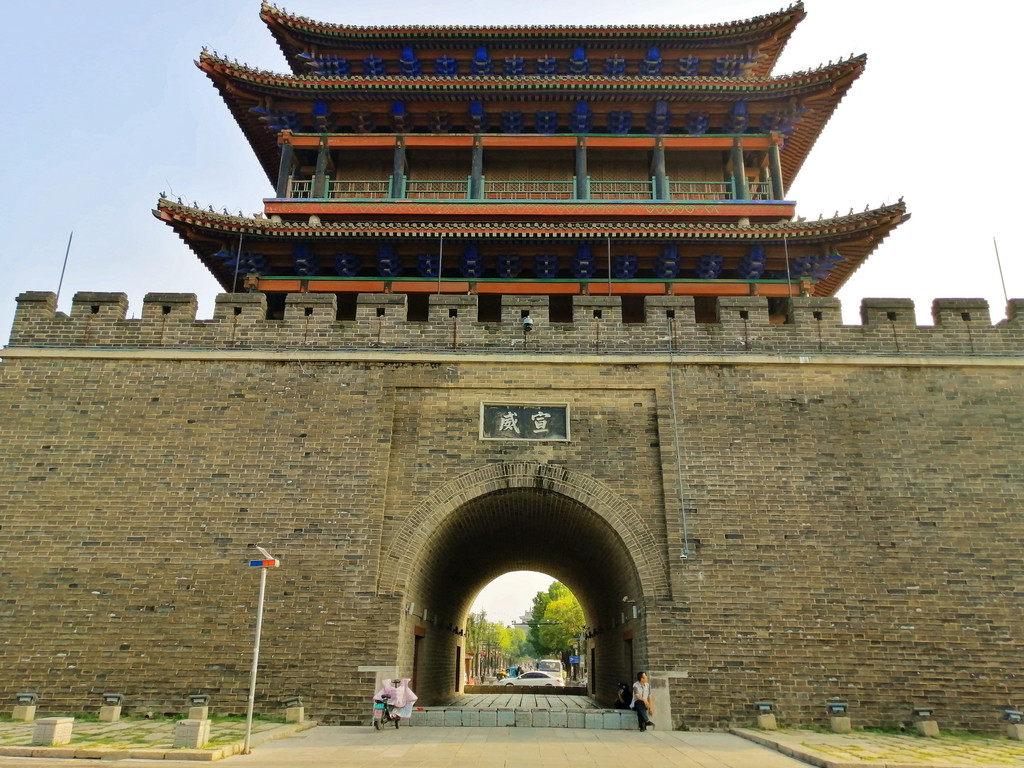 北门距西门不远,城门上写着“宣威”,行人可从门洞中通行,机动车则不行。