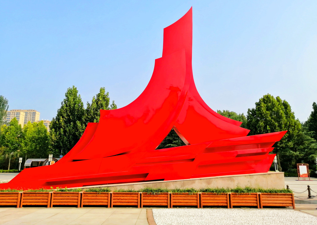 孔繁森同志纪念馆在烈士堂的后面,坐落在东昌湖畔,迎面是一块鲜红的雕塑,仔细一看外形是个大写的人,暗指孔繁森就是酱紫的。