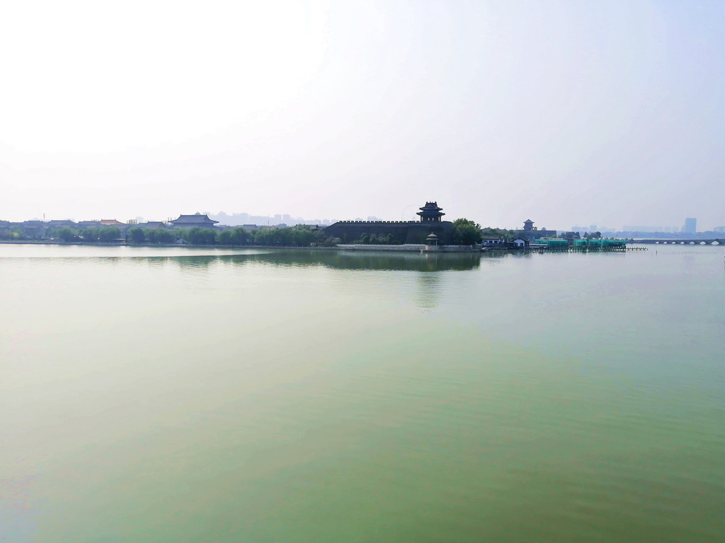 湖中的城叫聊城古城,也称东昌古城,古城面积仅有1平方公里,却被6倍大的湖水包围,城中有湖,湖中有城。
