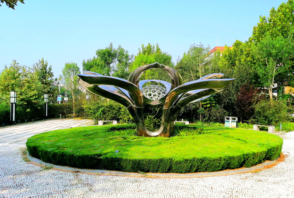再环顾四周,只见左右两侧的绿丛中各有一个白色的雕塑,叫圣洁雪莲,它是阿里的特产,在这里象征的是孔书记生前的品格。