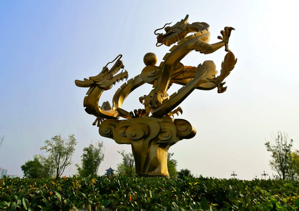 老码头不远处有个腾龙广场,广场上的“二龙戏珠”正盘旋而上,附近的孩子们在借助微风玩着风筝。