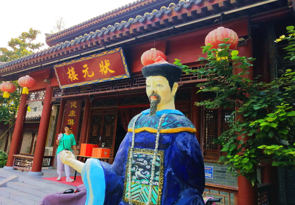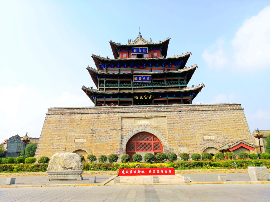 亮点来了,光岳楼,这是聊城的地标,也是古城的中心,就像西安的钟鼓楼、北京的天安门城楼,它建于明代,建造它是为了“窥敌望远,报时报警”,现为全国存留的规模最大的明代木结构楼阁。清康熙皇帝曾四次登楼并题匾《神光钟暎》,意为光岳之神光与东岳楼之神光交相辉映,而乾隆皇帝更是九过东昌六次登楼,为光岳楼题写了匾额,称它是“天下第一楼”,牌匾的规格与故宫相等,蓝框金字。光岳楼还是乾隆南巡三十六行宫之一,行宫就设在二楼,他为光岳楼题诗多达13首。可惜这座楼远不及滕王阁、黄鹤楼、岳阳楼名气大,如果不是来聊城,我估计也不知道它的存在。
