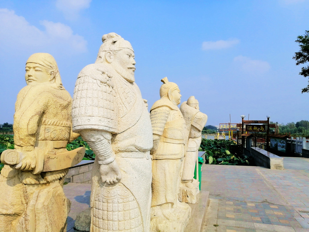 水浒中的108位好汉全部在此亮相了,水浒广场上伫立着他们的雕像,这些石像按上位天罡星三十六星,下位地煞星七十二星来排定,石像下都刻着他们的诨名和姓名。