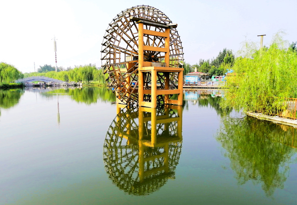 广场的对面是水车园,有几部仅供观赏的水车,没有我年少时踩过的那种水车,水车不抽水改供拍照用了。