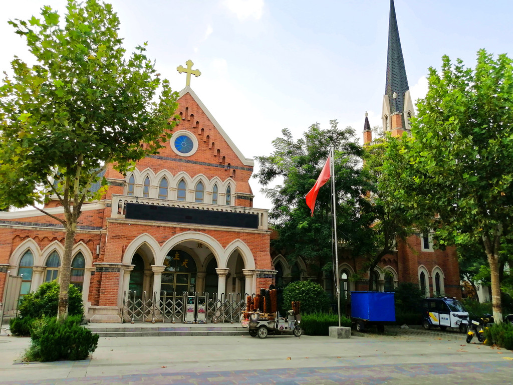 天主教堂看上去是新的,准新人们来此拍婚纱照太适合了。