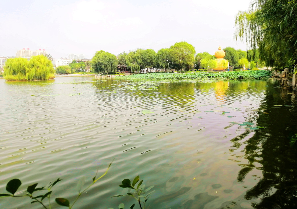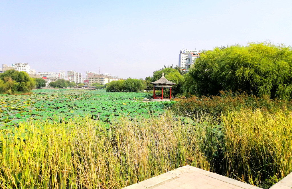 我拿着地图,规划了一条尽可能不走回头路的游览线路,如此便来到了荷花亭,这是一个内湖,周围是居民区。
