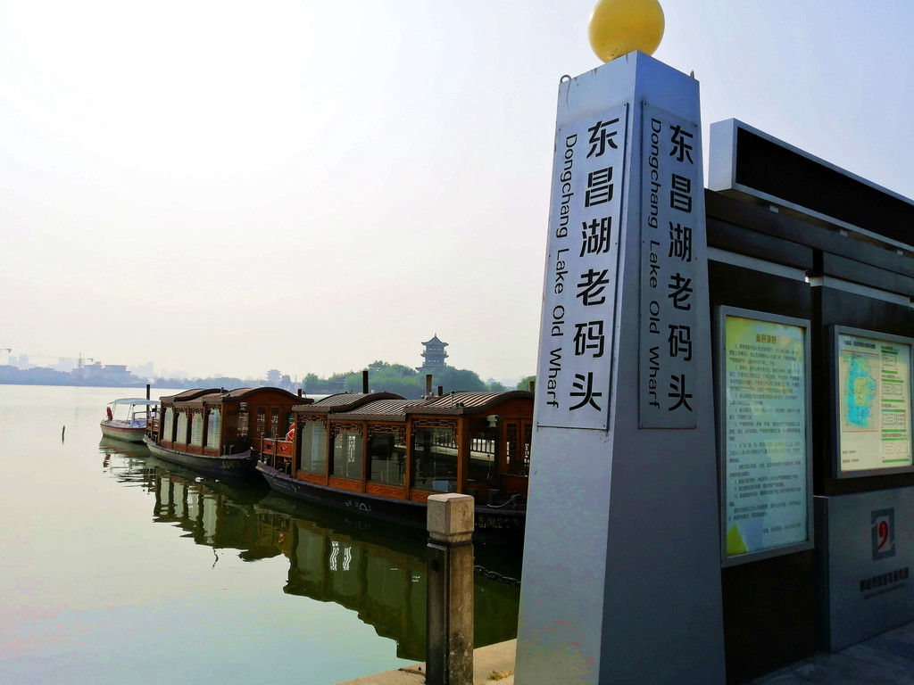 东昌湖因太大了,所以建了多个游船码头,每个码头都泊着很多条船,也由于是周一,坐船的人很少。坐着游船看古城风貌,应该是一件心旷神怡的事吧。