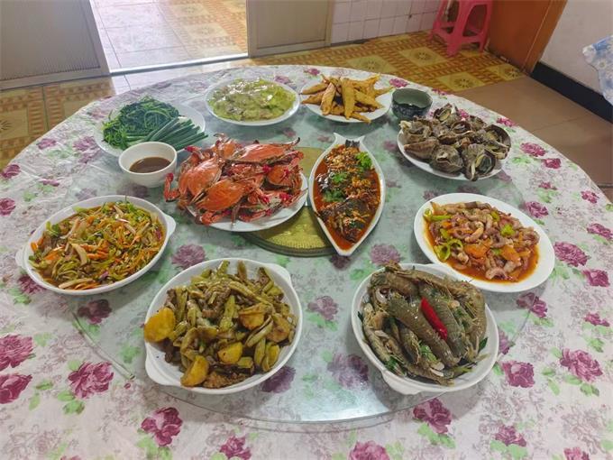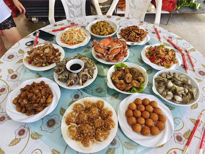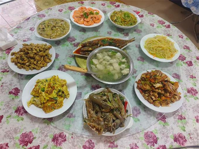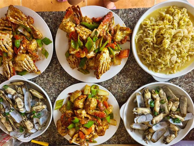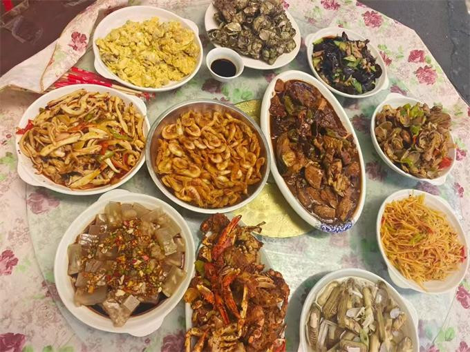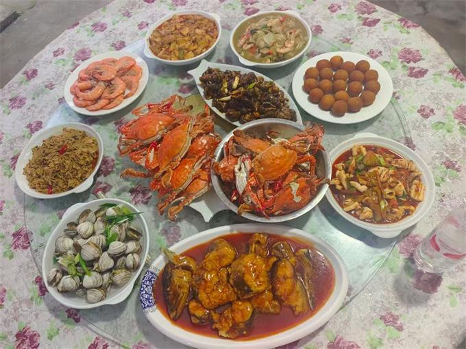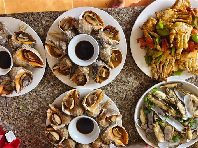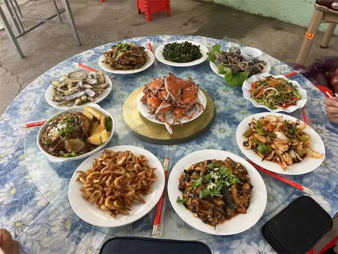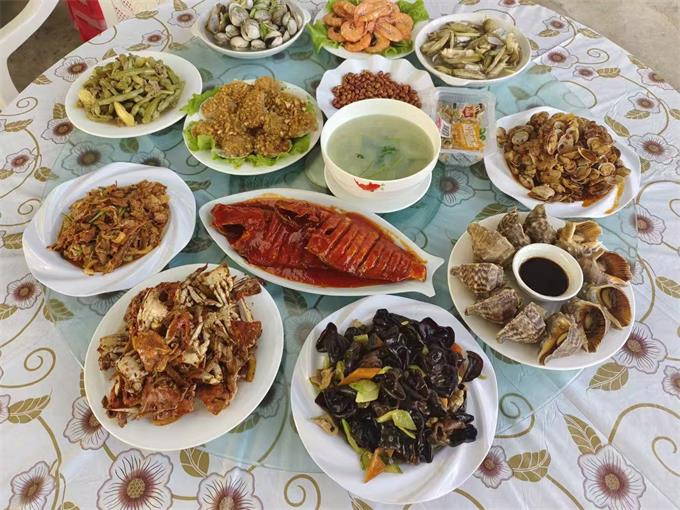 餐饮美食:餐厅就在大院子里,能容下10多桌,夏天宽敞风凉,喝酒聊天,美滋滋,作为当地渔家所开的山庄,会为游客提供新鲜美味的海鲜菜肴,让游客品尝到地道的渔家风味。山庄还有自己渔船捕捞,新鲜食材,梭子蟹,大海螺,八爪鱼,各种贝类。