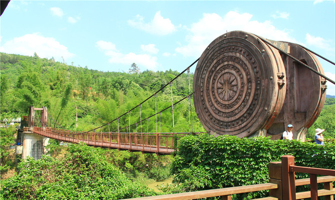 桥头设立的图腾柱象征着瑶族的尊严,对祖先、神灵的崇敬,征服自然的信心和力量,柱身上的浮雕图案展示了瑶族传统、独特而古老的民族文化,具有浓郁的地方民族特色。