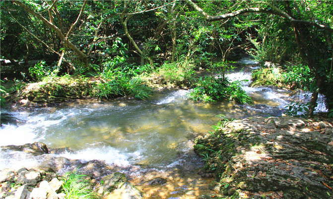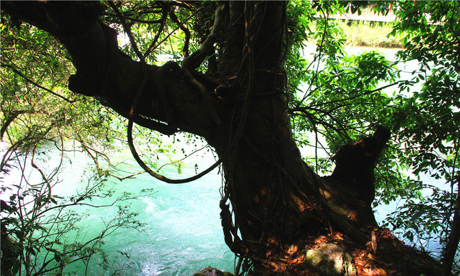 水中有石,石上有树,树植水中,这种水、石、树相偎相依的奇景令人叹为观止,远远望去宛如漂在水上森林特色。