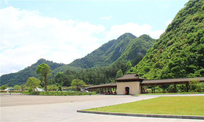停车后步行走过这个门,前行500米到达西门游客中心购票