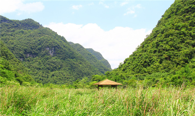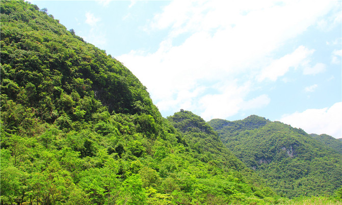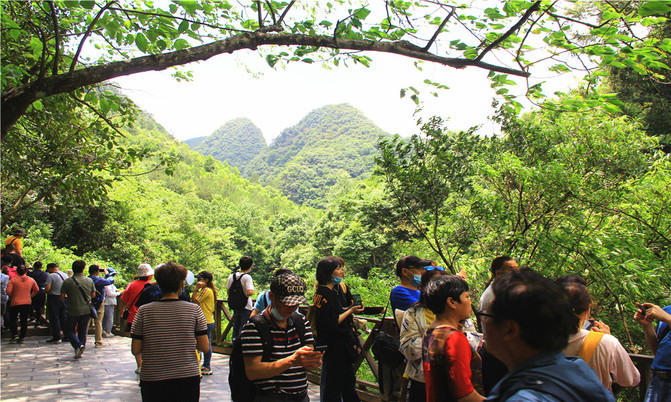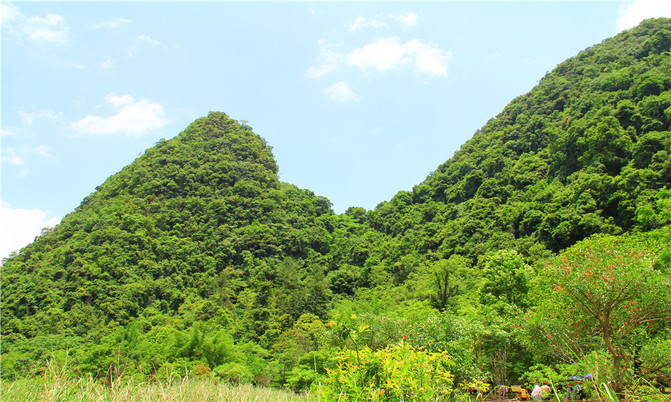 这里密集的峰丛耸入云天,山峰上原生性森林密布,山腰云雾缭绕,清新悦目。