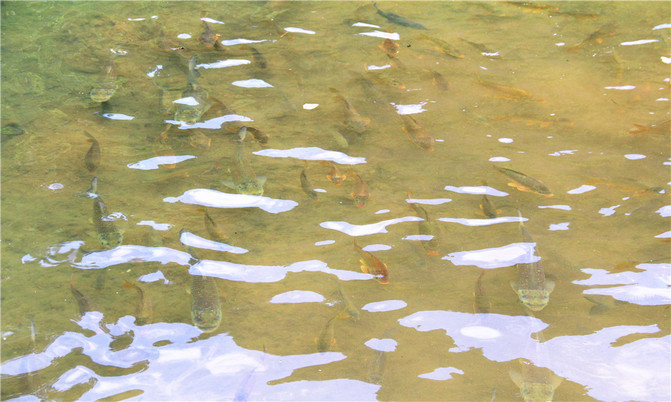 坝上的滚水瀑布和潭外川流不息的渠水,让人感受到卧龙河在潭底的翻动。