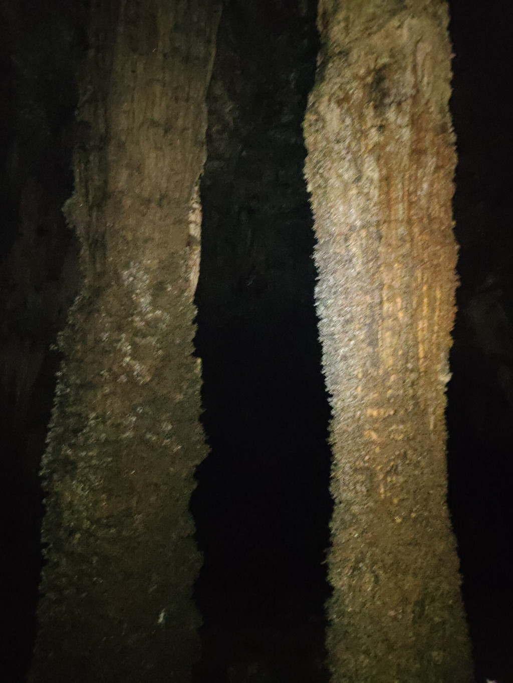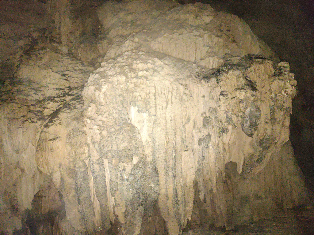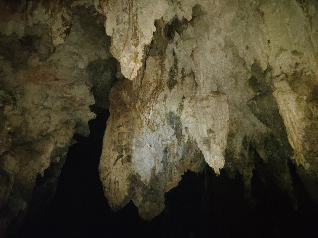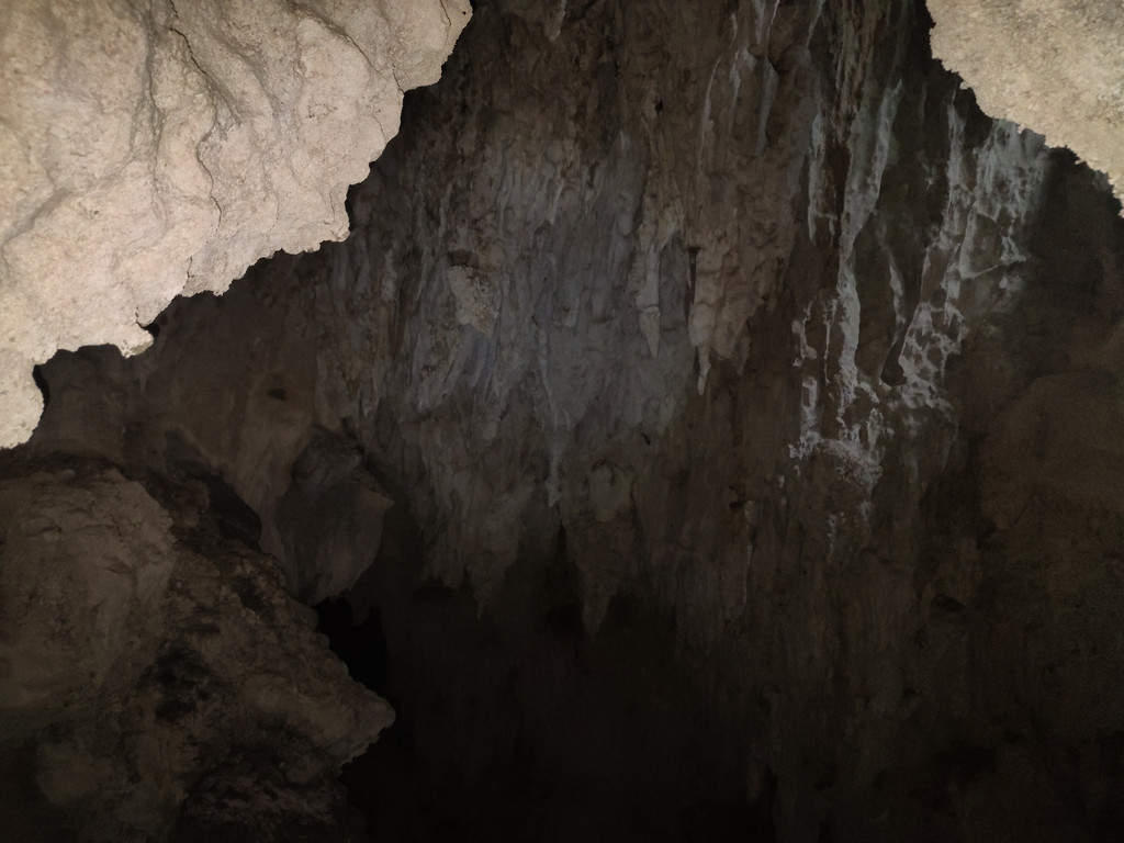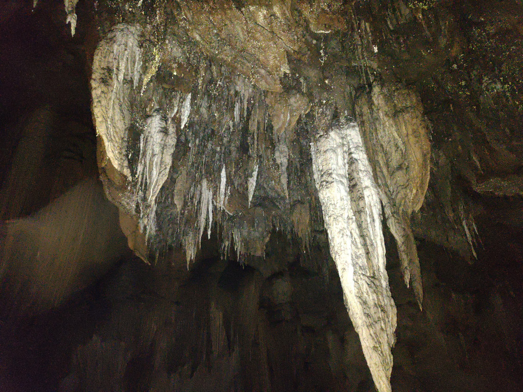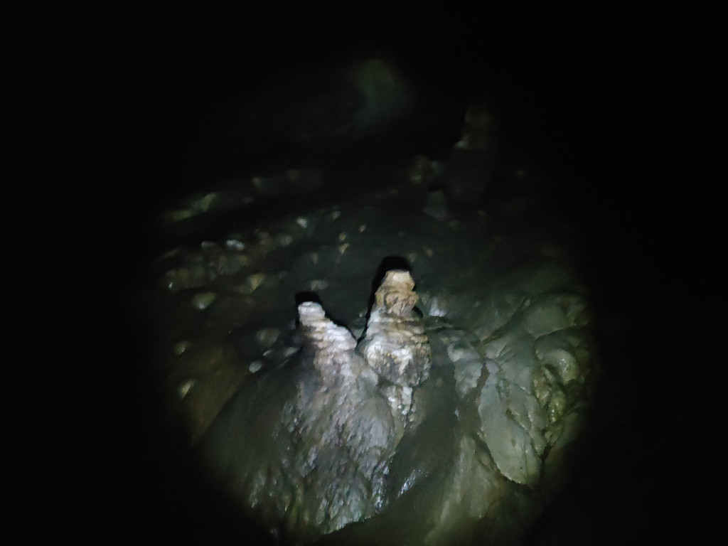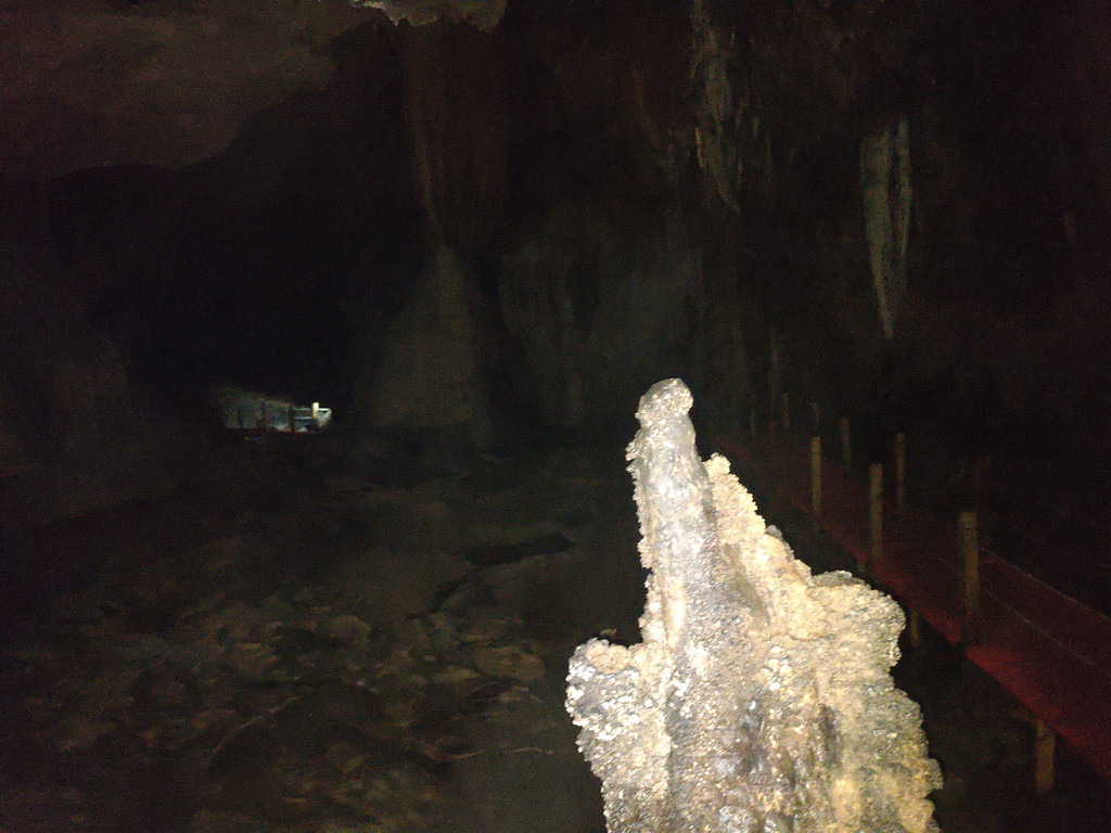 走进洞口,我们才知道为什么需要用探照灯和手电,因为里面完全没有任何灯光,全封闭的喀斯特溶洞,连天窗都没有一个,所以别想着漏一丝光线下来。