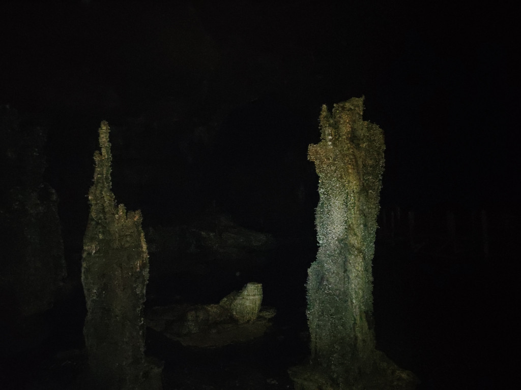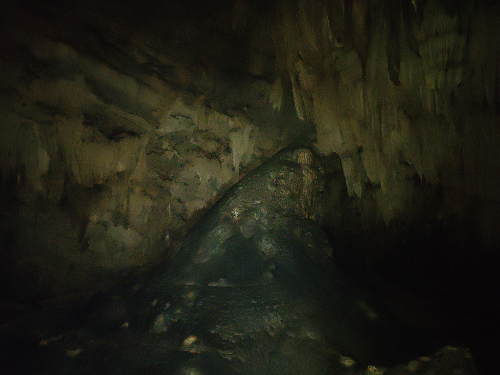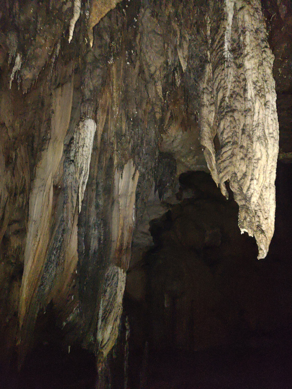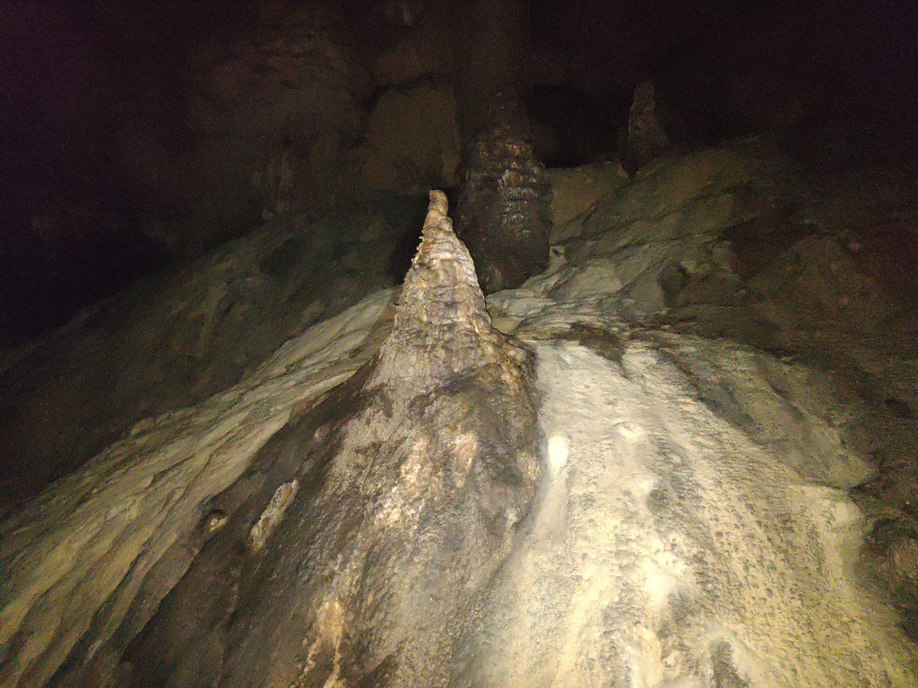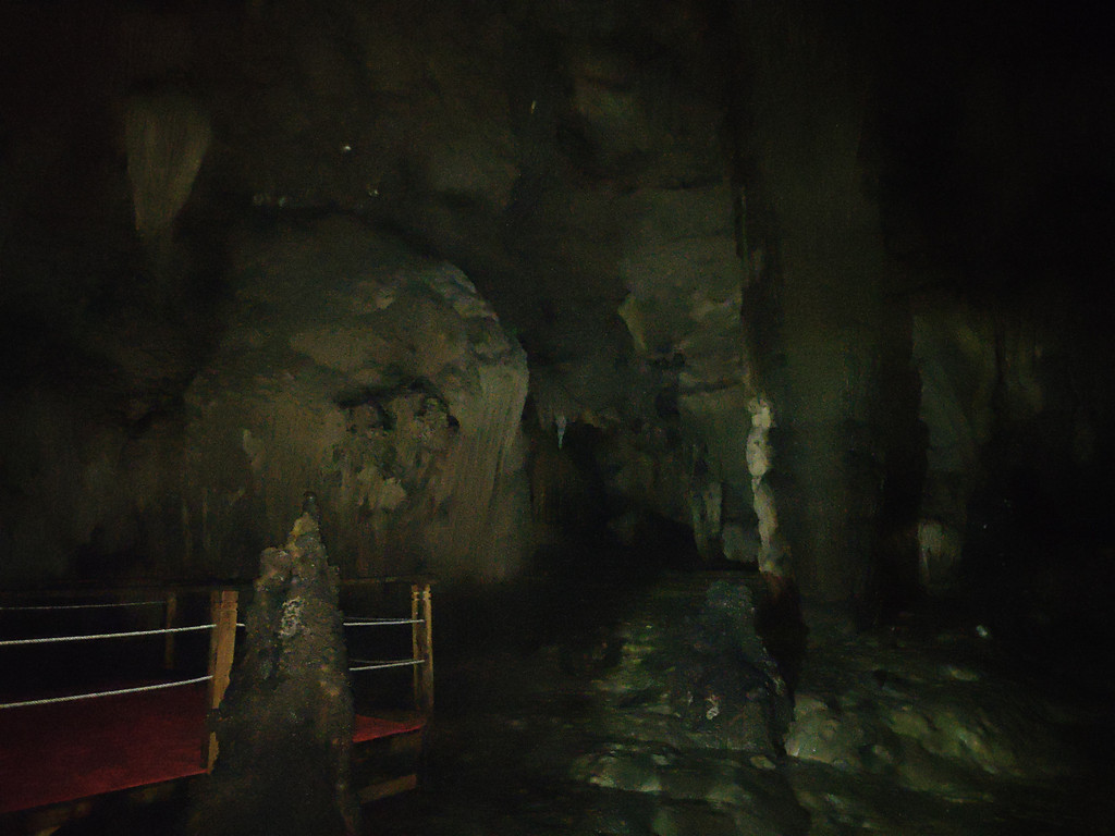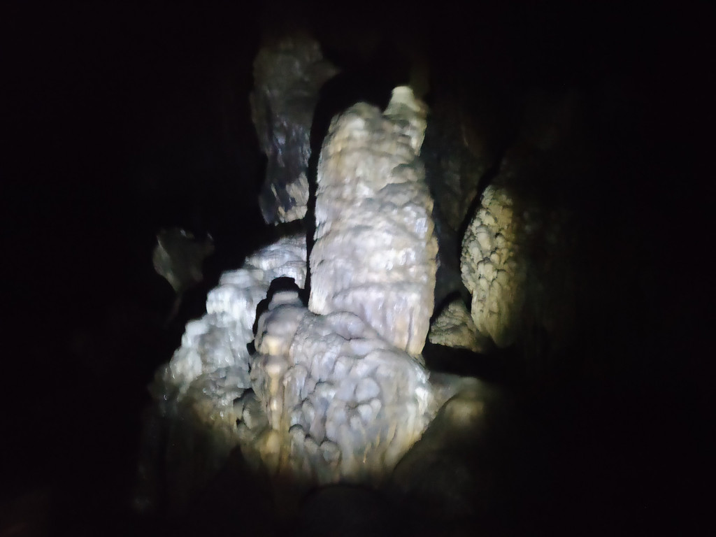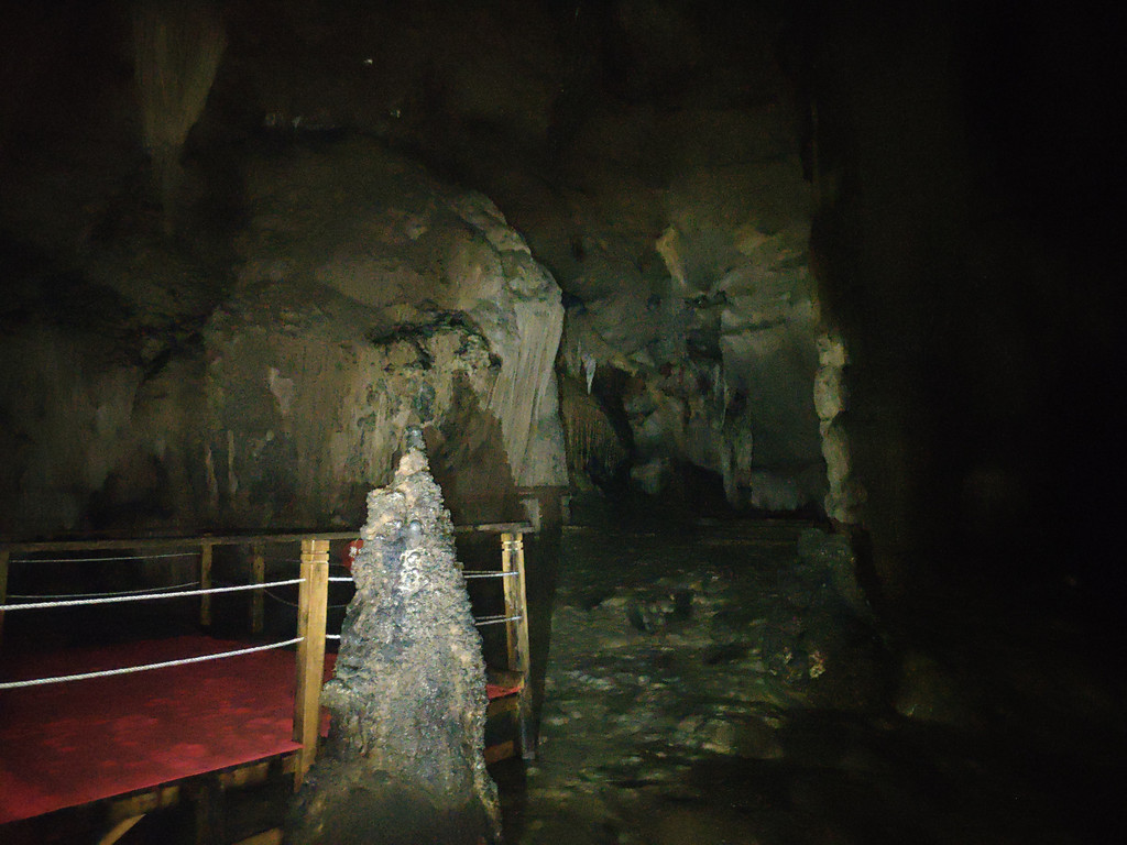 走进洞口,我们才知道为什么需要用探照灯和手电,因为里面完全没有任何灯光,全封闭的喀斯特溶洞,连天窗都没有一个,所以别想着漏一丝光线下来。