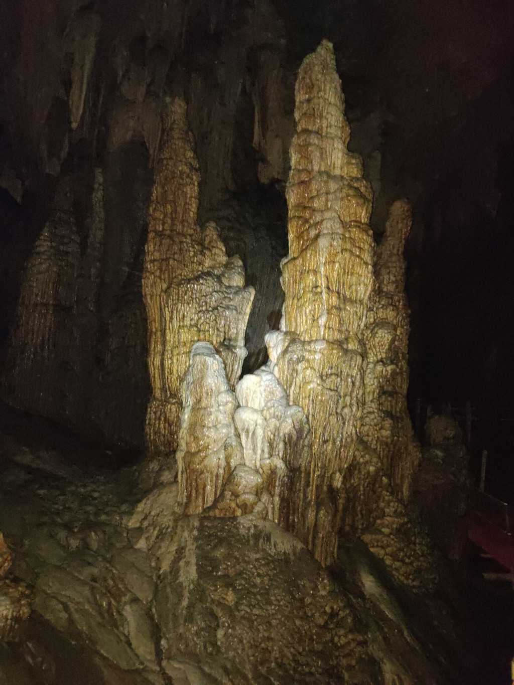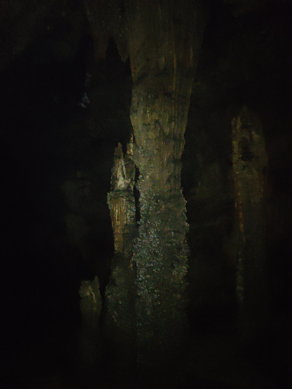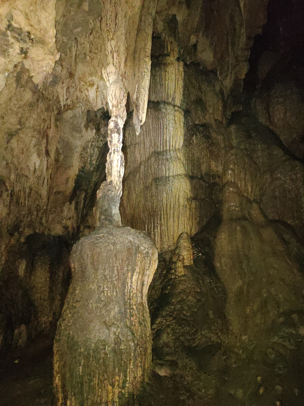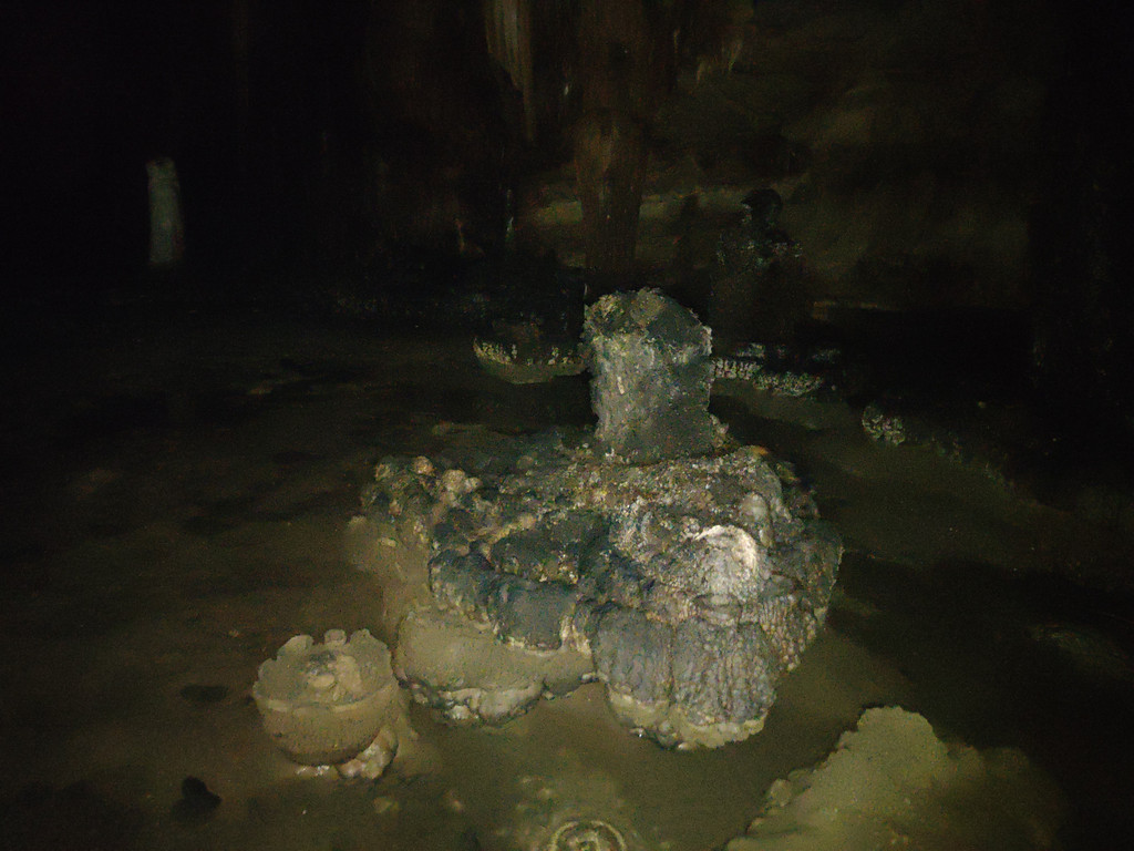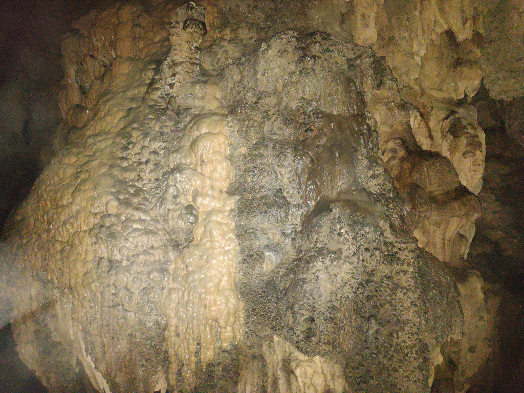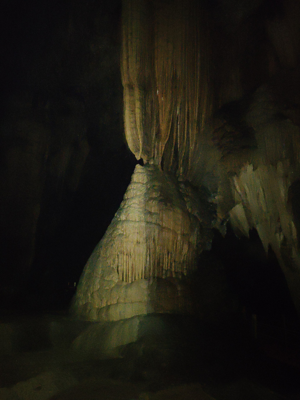 走进洞口,我们才知道为什么需要用探照灯和手电,因为里面完全没有任何灯光,全封闭的喀斯特溶洞,连天窗都没有一个,所以别想着漏一丝光线下来。