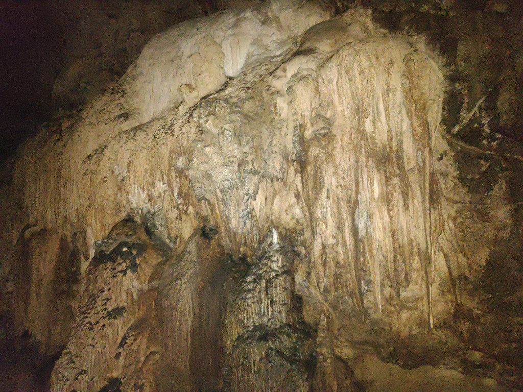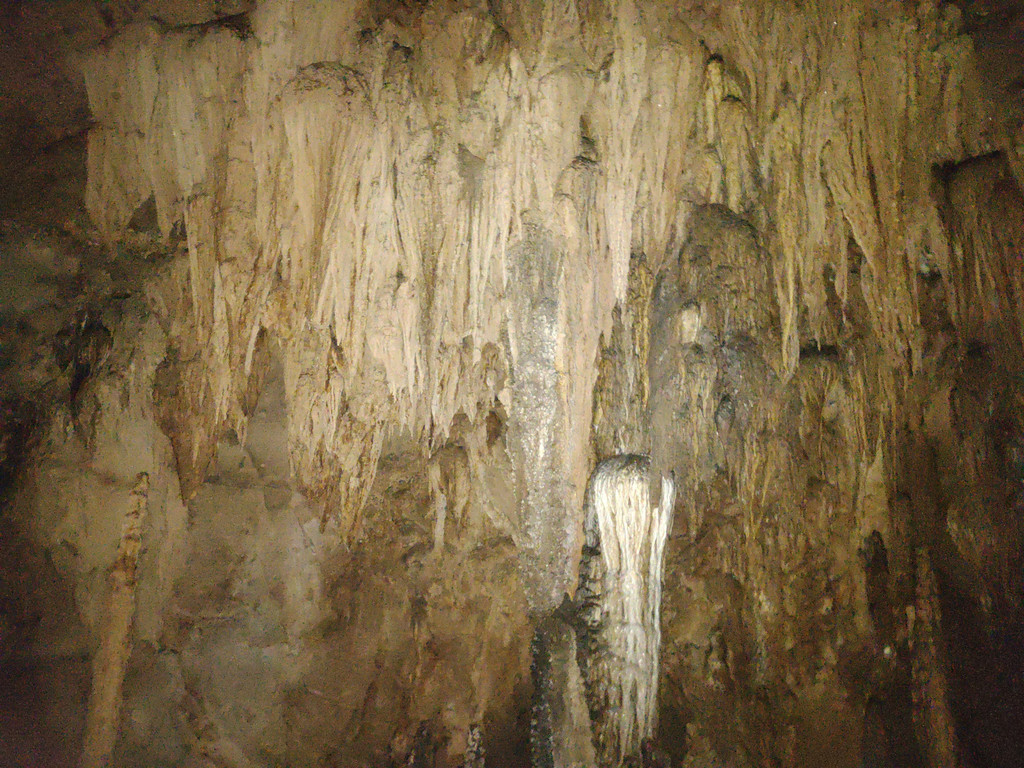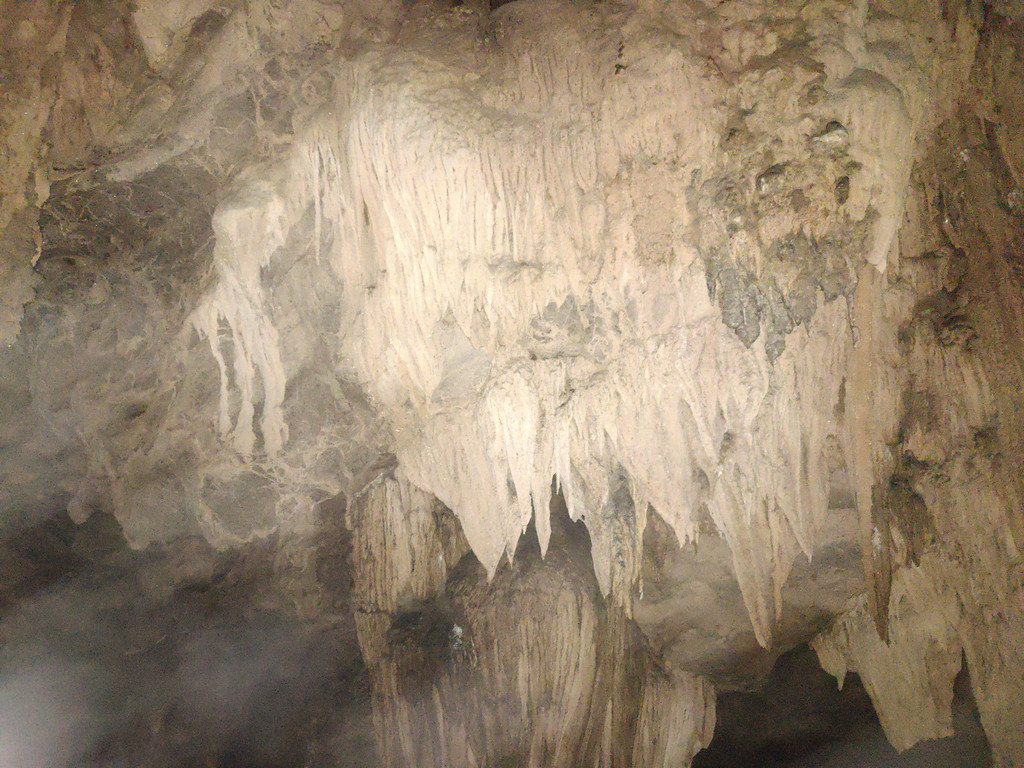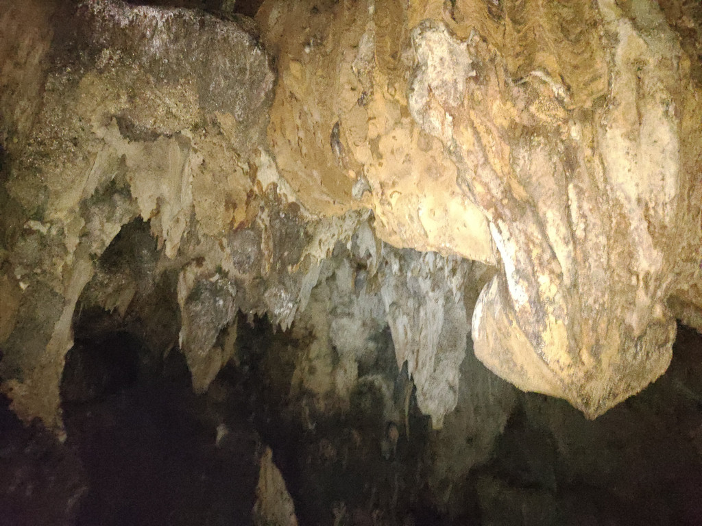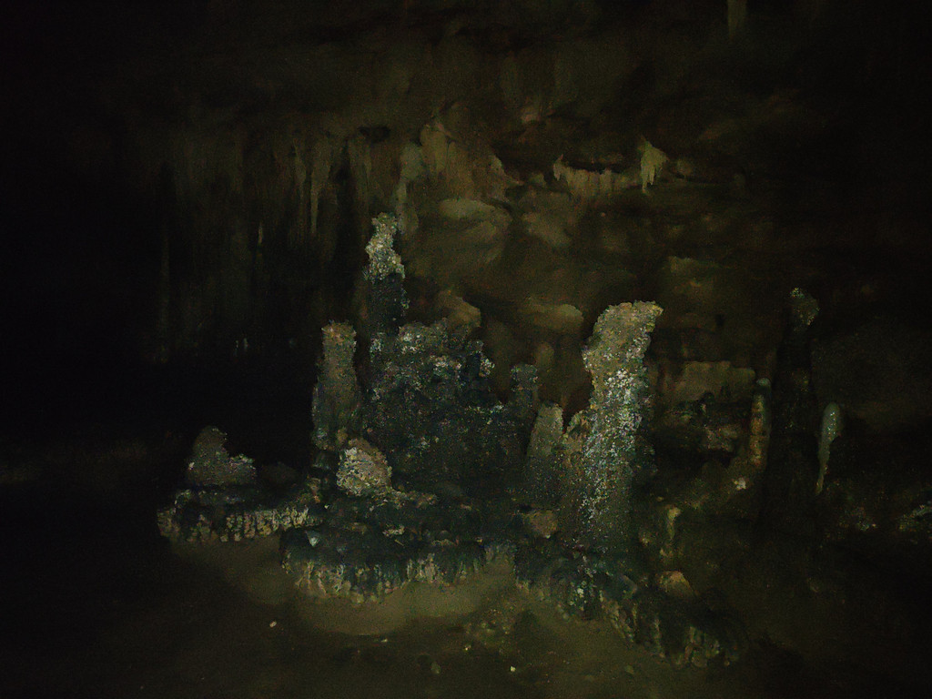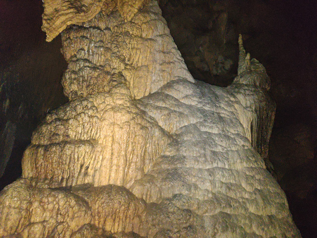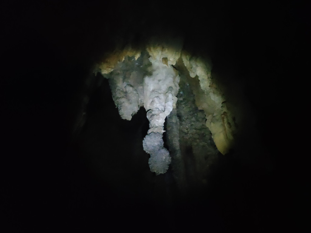 走进洞口,我们才知道为什么需要用探照灯和手电,因为里面完全没有任何灯光,全封闭的喀斯特溶洞,连天窗都没有一个,所以别想着漏一丝光线下来。