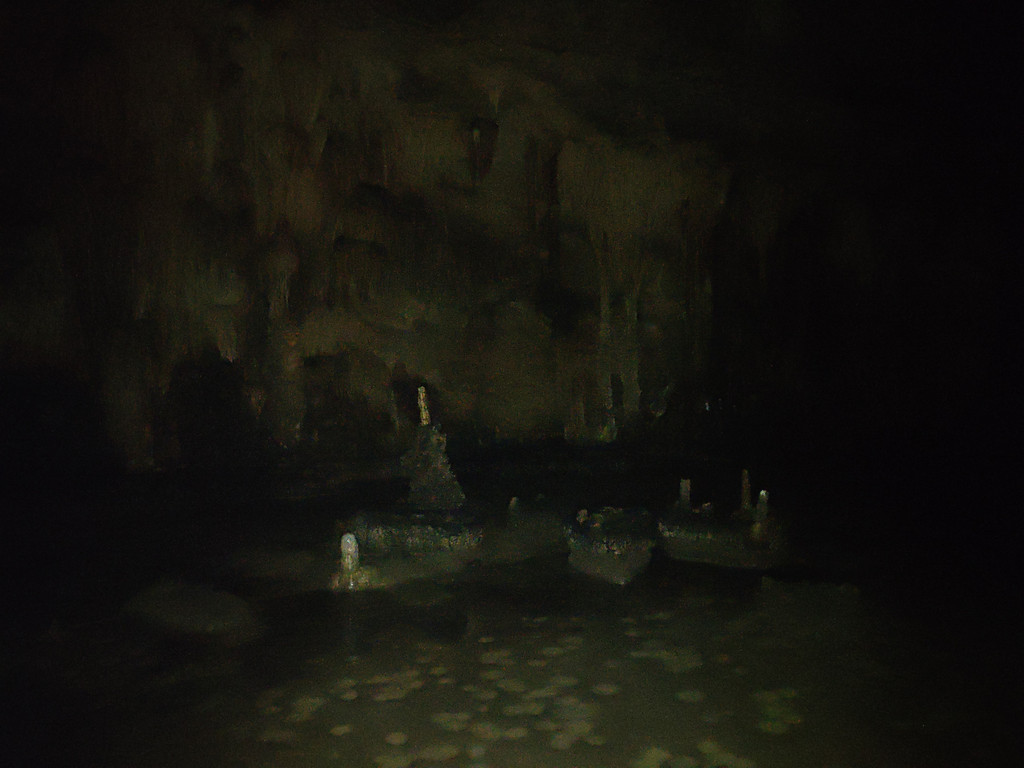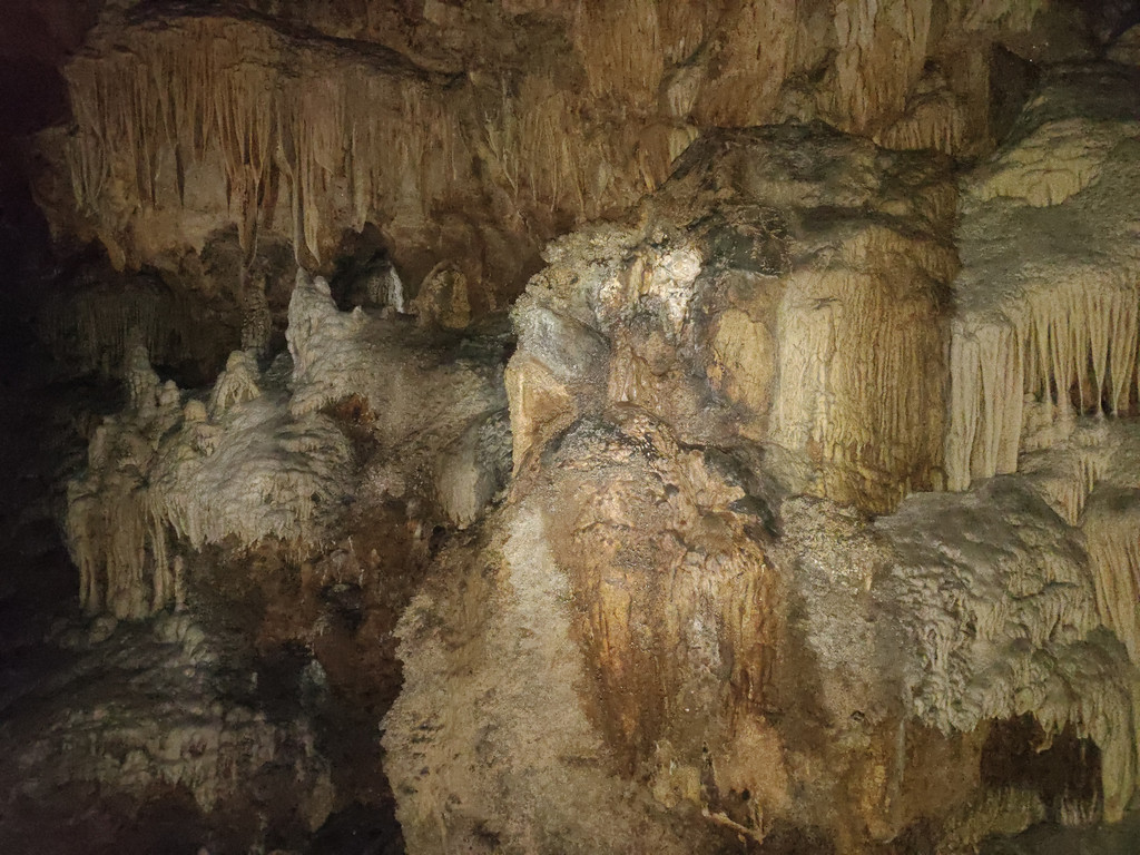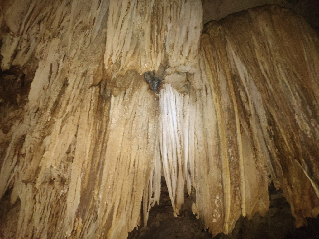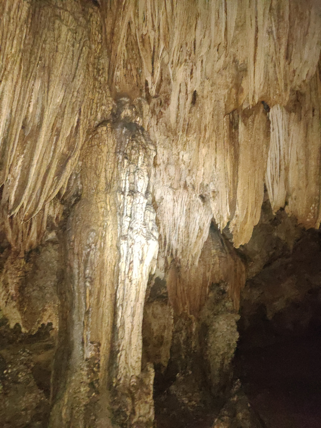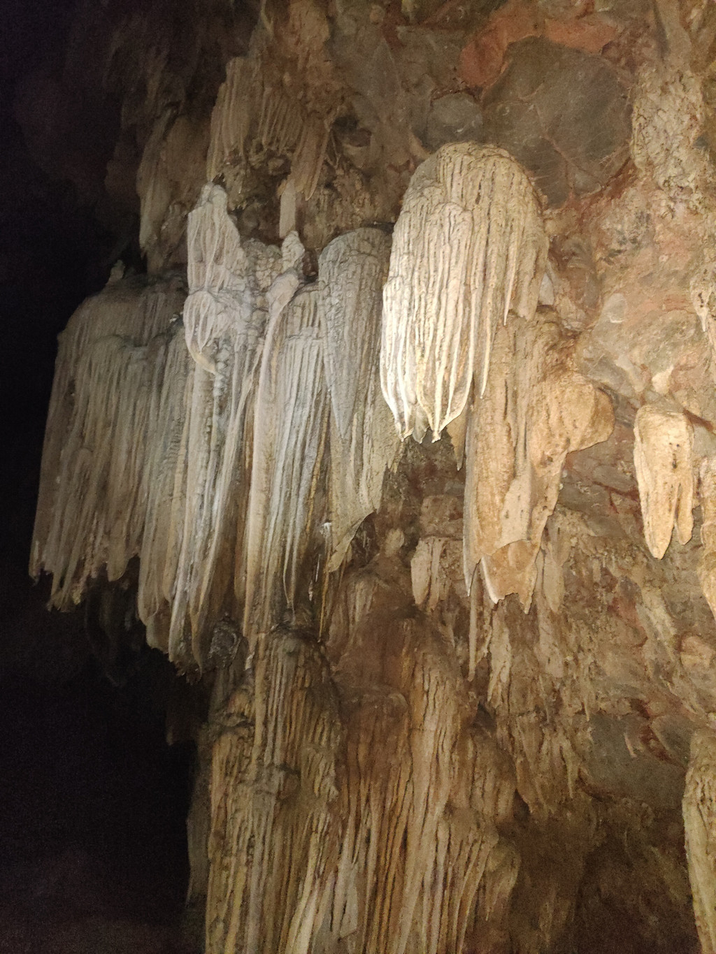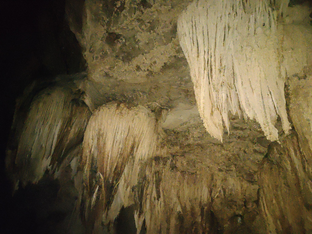走进洞口,我们才知道为什么需要用探照灯和手电,因为里面完全没有任何灯光,全封闭的喀斯特溶洞,连天窗都没有一个,所以别想着漏一丝光线下来。