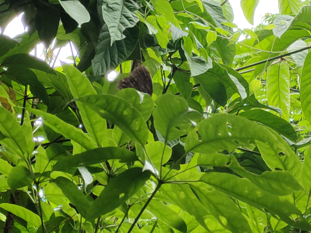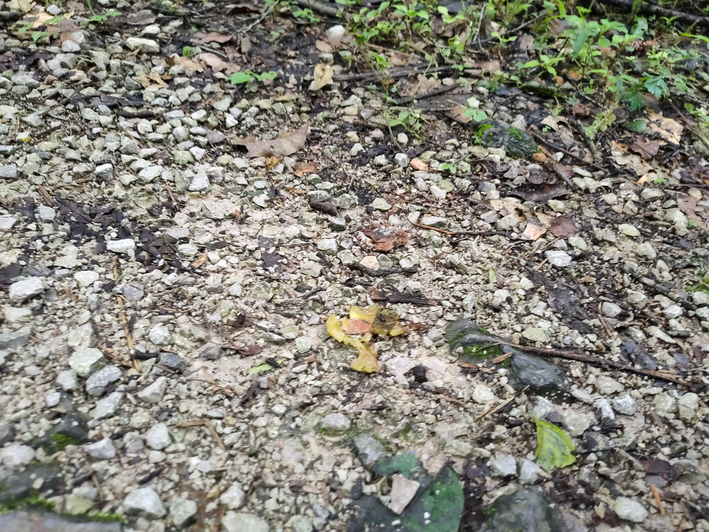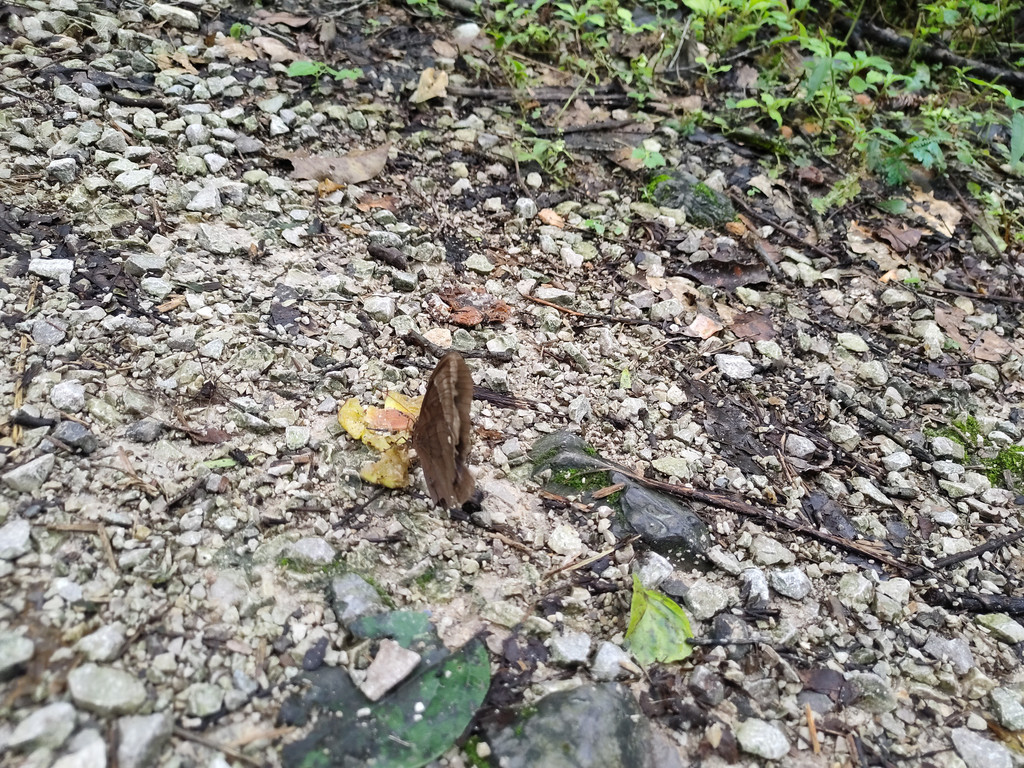 沿着简陋的道路往前走,这里的蝴蝶很多,经常是成群结队一起飞。偶尔有脱离部队的栖息在路边甚至路上,也不怕人,看到我们走近居然还很老神在在,非要到了它跟前,才扑闪着翅膀飞起来。