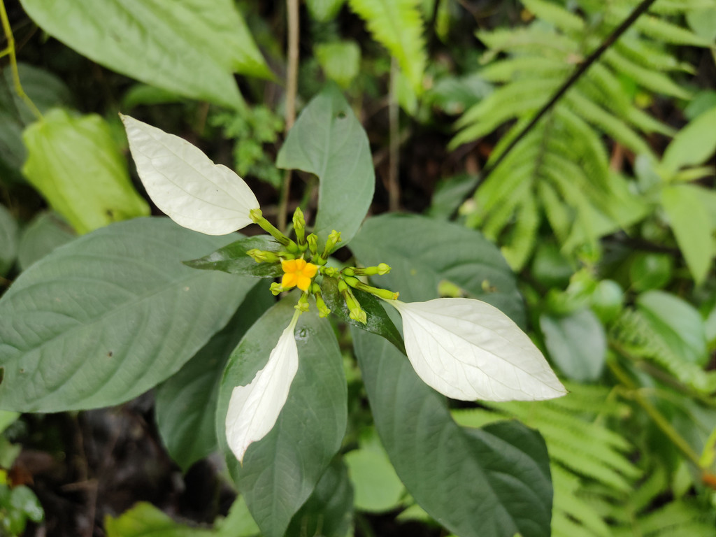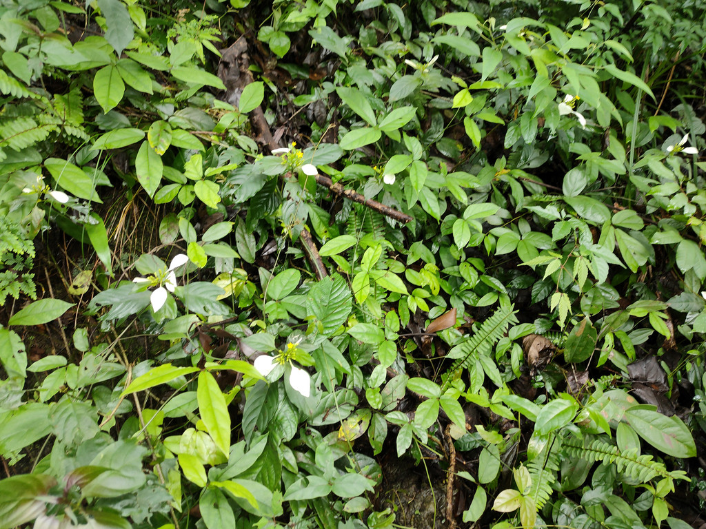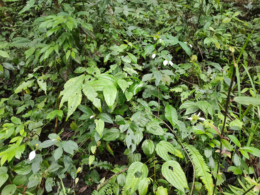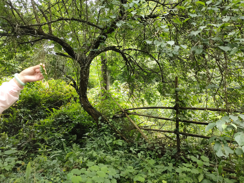 我们没有逗留太久,直接往金狮洞而去。经过一段实在不怎么像游道的道路后,终于看到了景区的牌子,沿着一段木质的栈道往上攀登。在半中间,有两条岔道,一条往漏斗森林,一条往九洞天。小伙伴对漏斗森林很向往,但我们没有请向导,但是要进入原始森林,必须一大早就出发,否则到晚上都赶不回来。我们只是走进去了一小段路,看了看茂密的树林和寄生的藤蔓,还发现了两棵兰花,但是没有花朵,也不知道是什么品种。