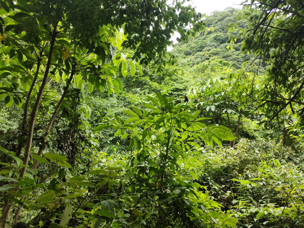 漏斗是喀斯特地貌的一种形态,就是四周山峰封闭、中间深陷陡峻的倒圆锥形洼地。漏斗森林就是在这样的地貌上形成的森林类型,是最具喀斯特地貌特征的森林。因为漏斗封闭的地貌形态,因此漏斗森林内部的小气候特征和森林内景在组成上和常态不大一样,都保持着原始而自然的景色。当然,就我们走进来的这一小段路,那是看不出什么来的。