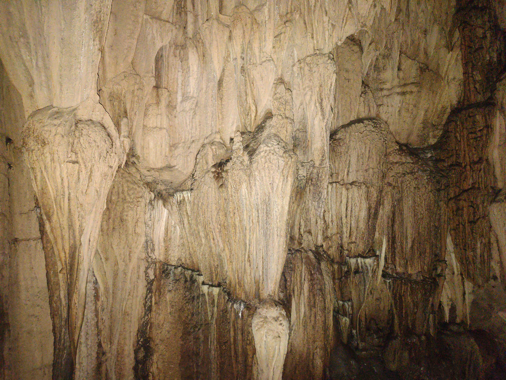 用手电照向四周,这些钟乳石各形各态。有的独石成峰,有的聚石成岭。有的如睡狮高卧不醒,有的如猛狮下山,有的独自一狮落落寡欢,有的群狮聚会争食……大概是受了洞名的影响,我们把洞里的石头想象成了各种狮子的形象。还别说,只要拥有想象力,洞里的这些钟乳石就能拥有各种形象。